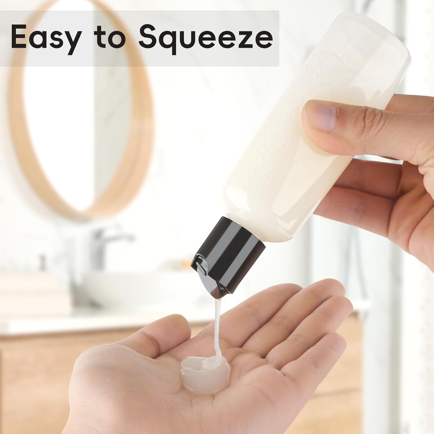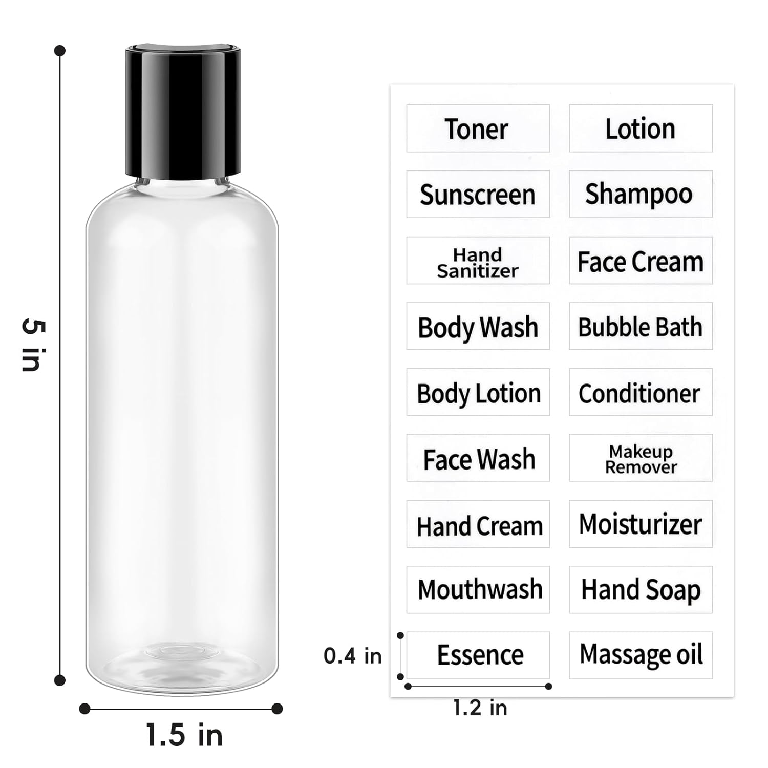 TUZAZO 10 Pack 3.4oz Empty Journey Bottles Pet Plastic Bottles with Black Disc High Caps and Labels Squeezable Containers Shampoo Cleaning soap Lotion Bottles