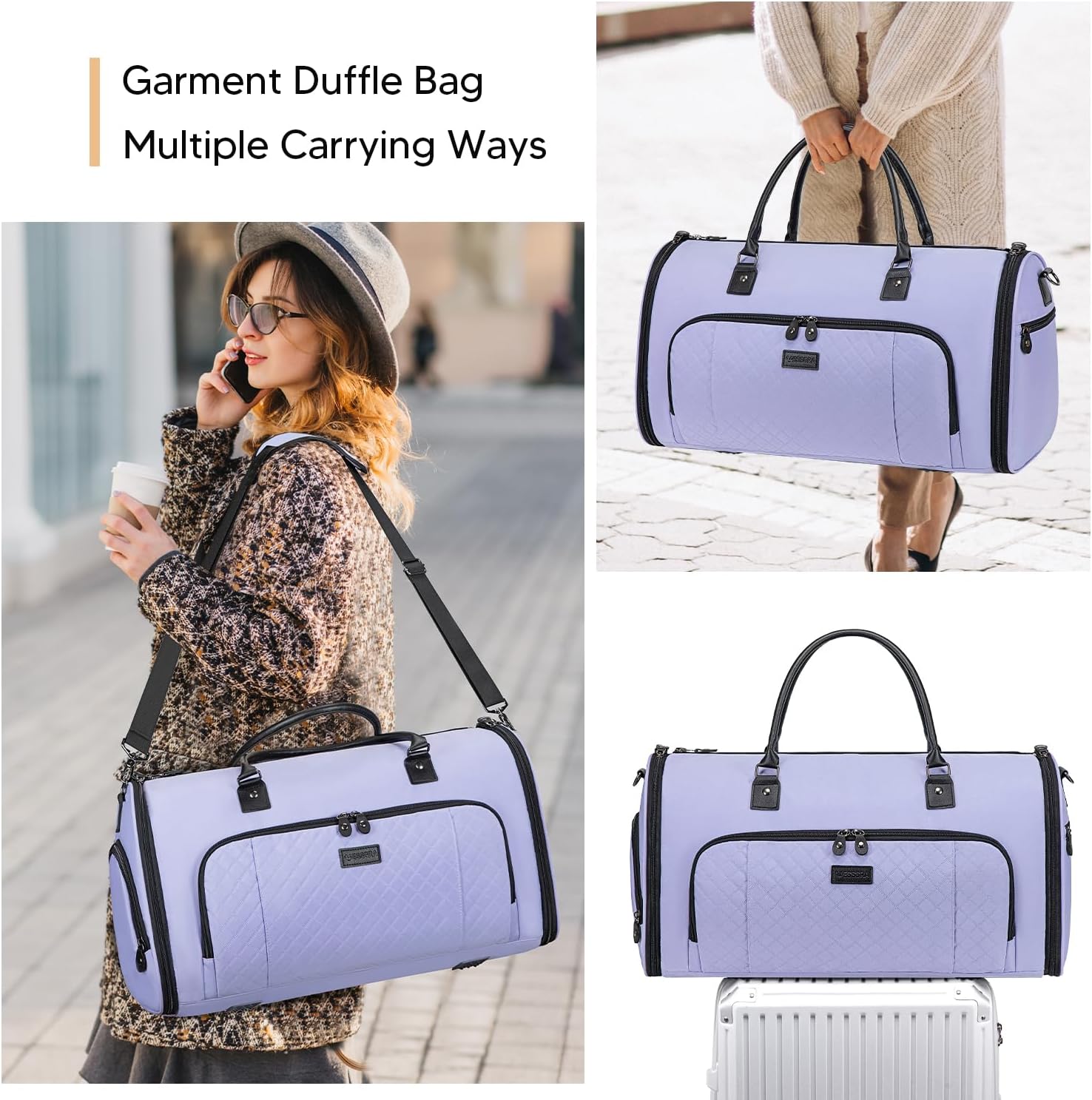 Convertible Garment Bags for Travel, Carry On Garment Duffle Bags for Women, Garment Bag with Shoes Compartment, 2 in 1 Travel Suit Bag with Detachable Shoulder Strap-Purple