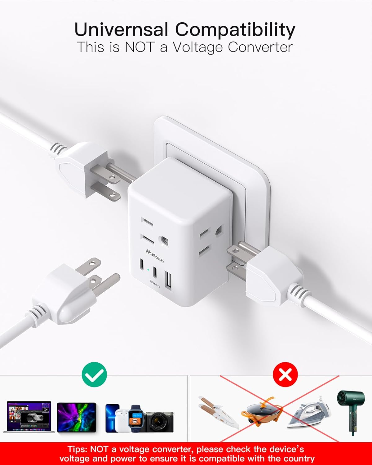 3-in-1 enter shops are suitable with customary North American 2 and three prong flat pin plugs. 3 aspect design with bigger area won’t block different adapters, that’s simpler to make use of for all types of apparatus.