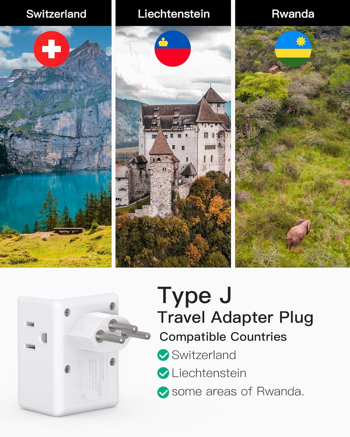 【Kind J Adapter for Switzerland】- This Switzerland energy adapter is specifically designed to be used in Switzerland, Liechtenstein, and a few areas of Rwanda. Superb for vacationers, enterprise folks, and worldwide college students.