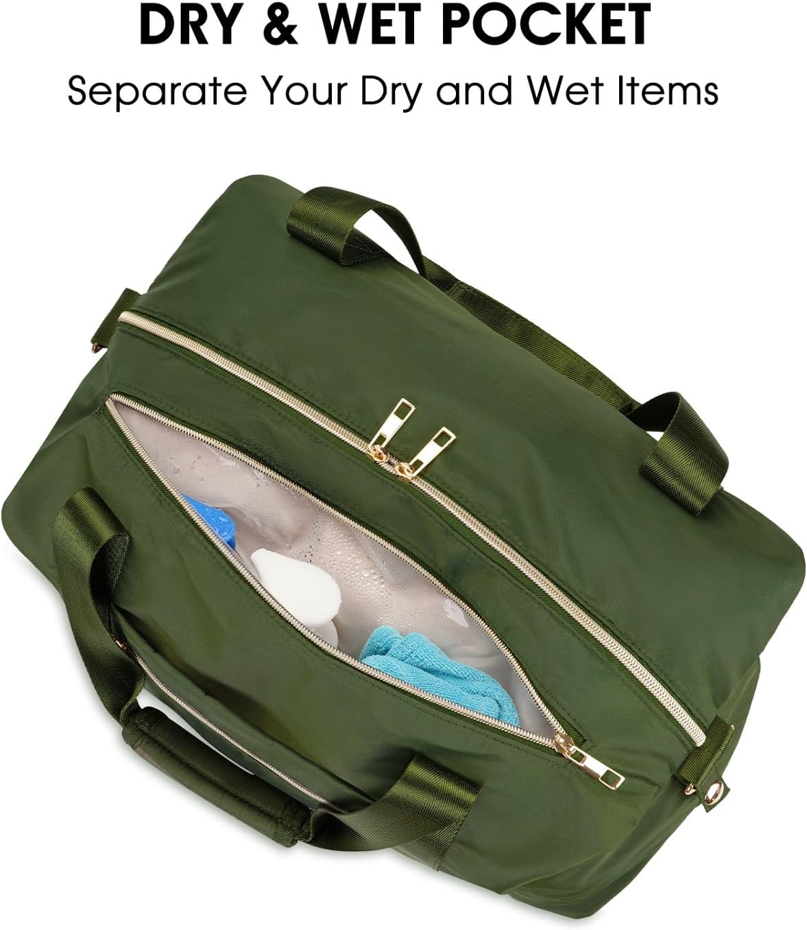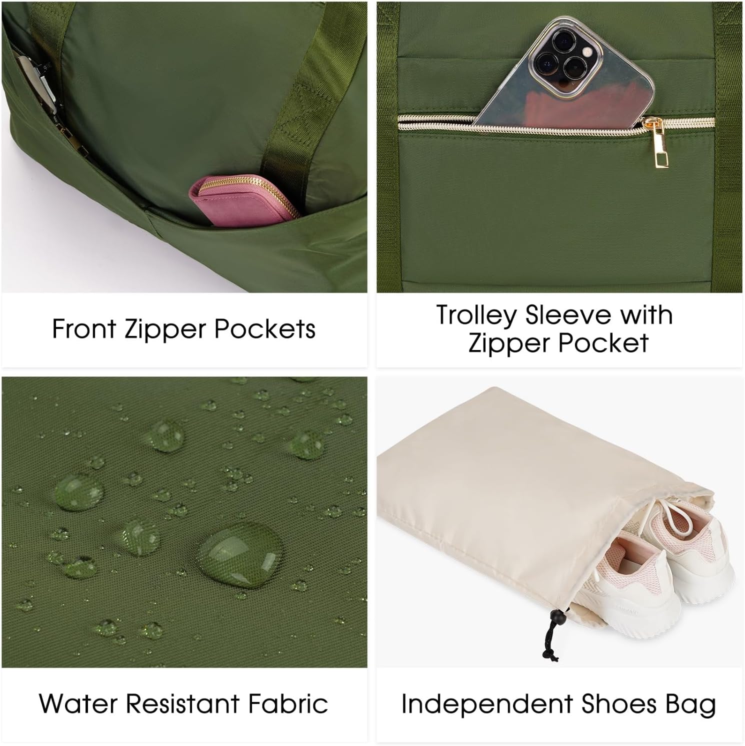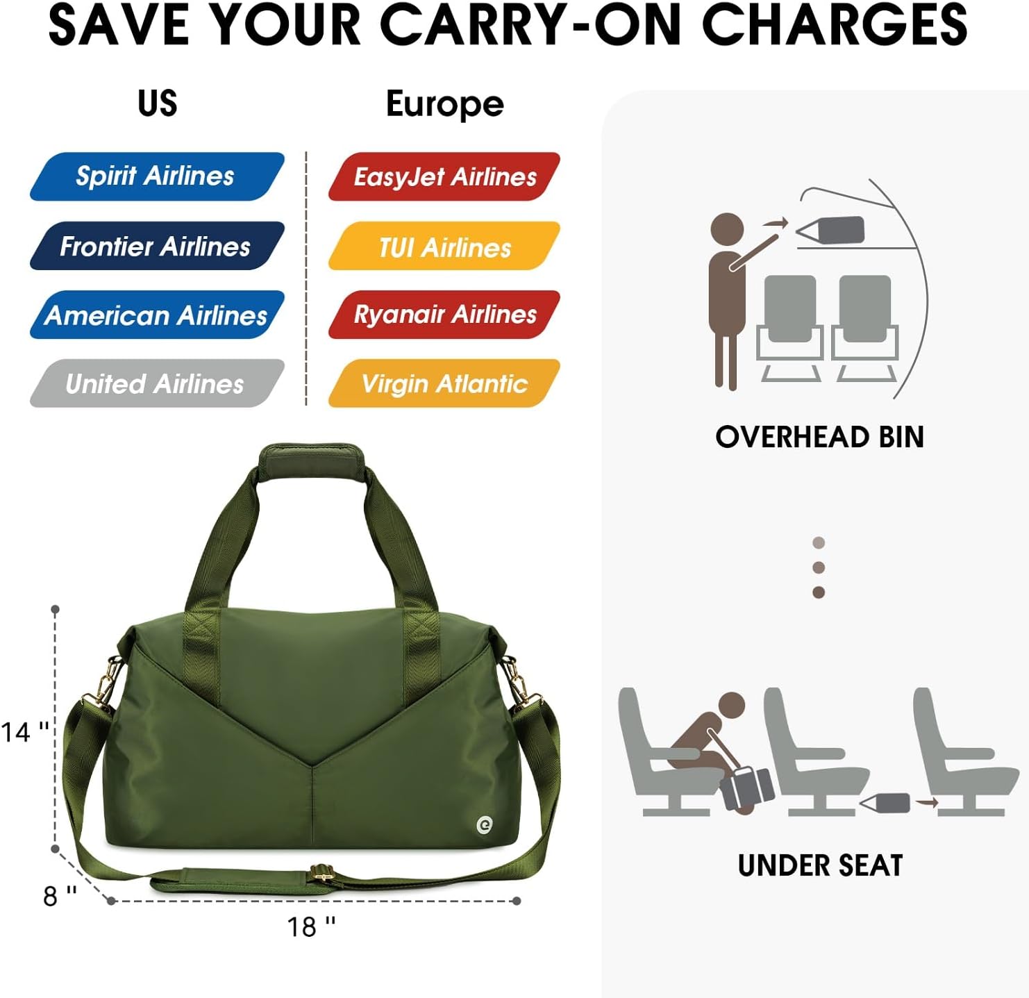 Travel Duffel Bag, For Spirit Airlines Personal Item Bag 18x14x8 Weekender Overnight Bag with TSA Approved Quart Size Bag & Shoes Bag, Underseat Carry-on Luggage for Women (Green)