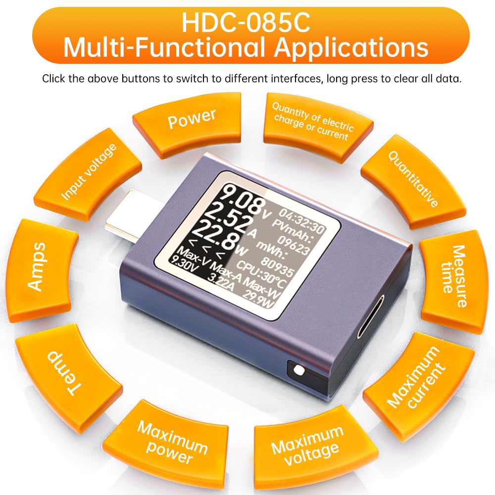 【Multifunctional USB C Energy Meter】Usb c tester Designed to detect the charging standing and strategy of USB-C units. Helps PD3.1 48V, PD2.0, PD3.0, PPS, OC2.0, QC3.0, FCP, SCPAFC, PE, DASH VOOC, SuperV00C and extra protocols. Help to detect charging efficiency of USB-C chargers, cables, energy banks, wi-fi chargers, laptops, smartphones, and different USB-C units. With a measurement accuracy corresponding to professional-grade devices at ±0.1%, it’s a necessary instrument for testing USB-C ports.