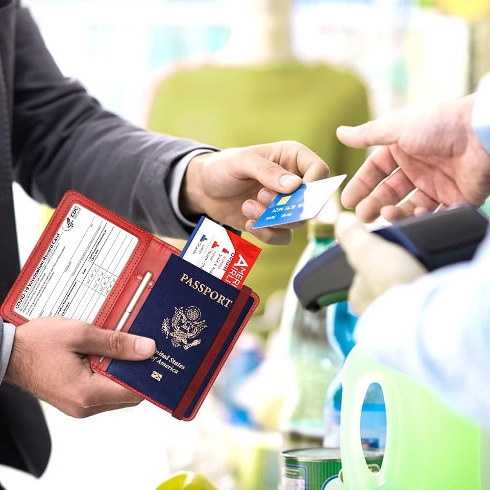 ✈【Massive Capability】Passport Touring Case has additional slots ,Not solely can retailer passport vaccine playing cards but additionally boarding cross, bank cards, id card, tickets, cash, SIM card , pen and and so on.