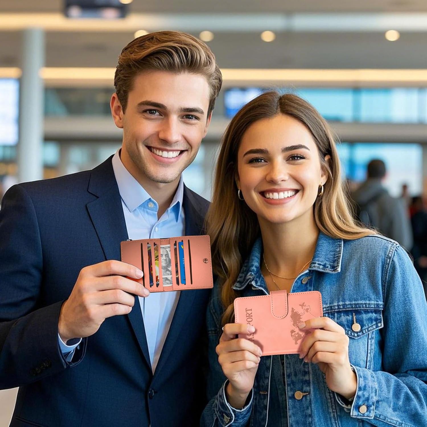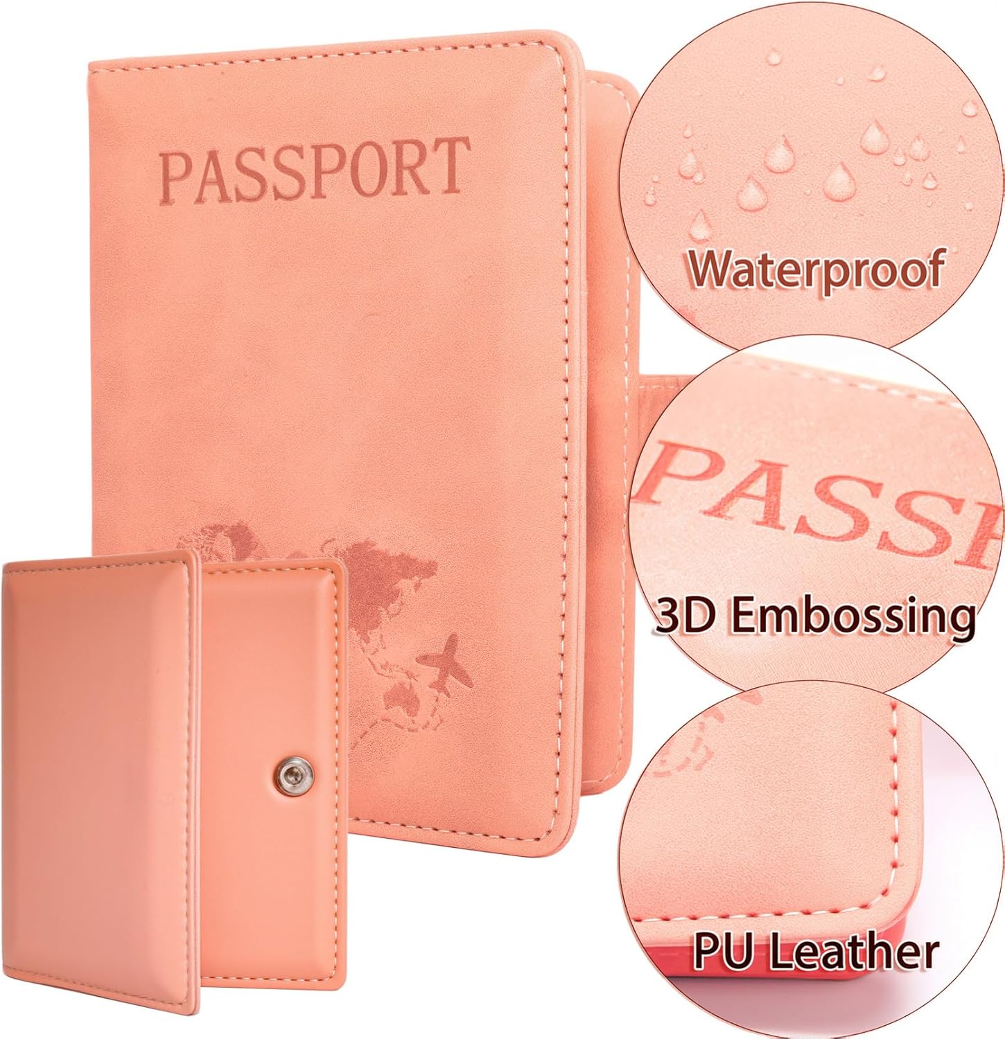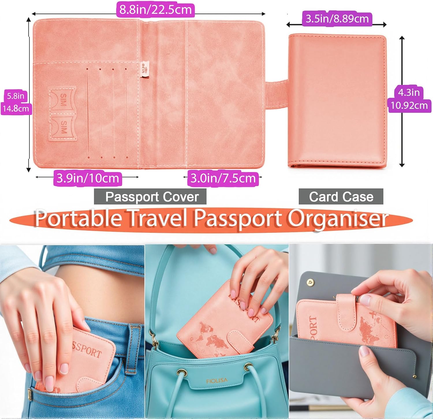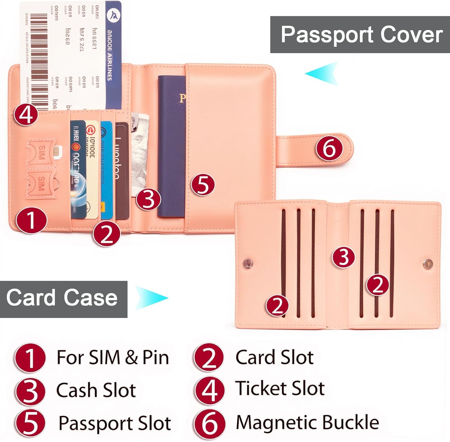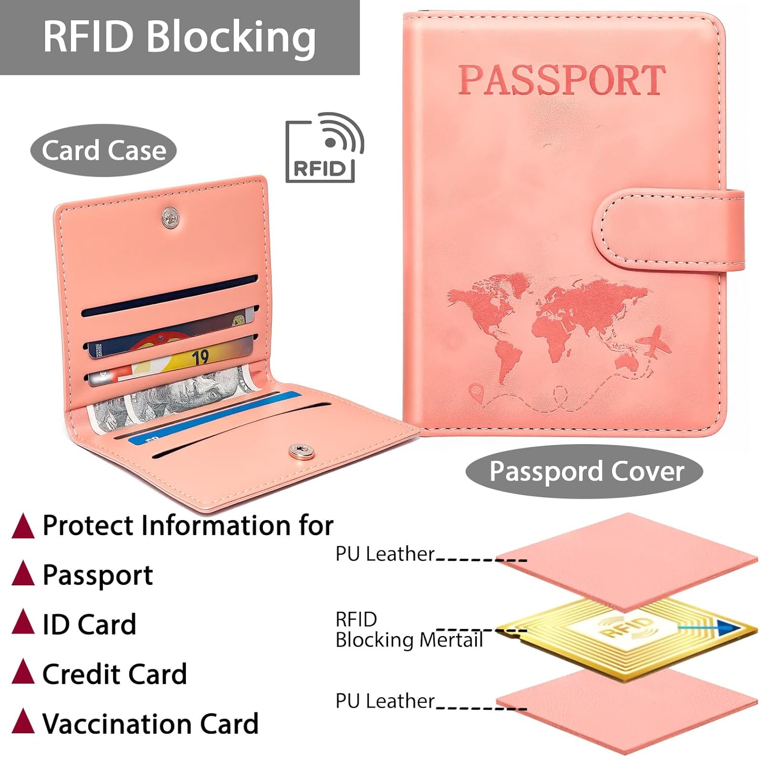 2 Pcs Travel Essentials Set, RFID Passport Cover for Women Mens, 1 Passport Holder + 1 Leather Card Case