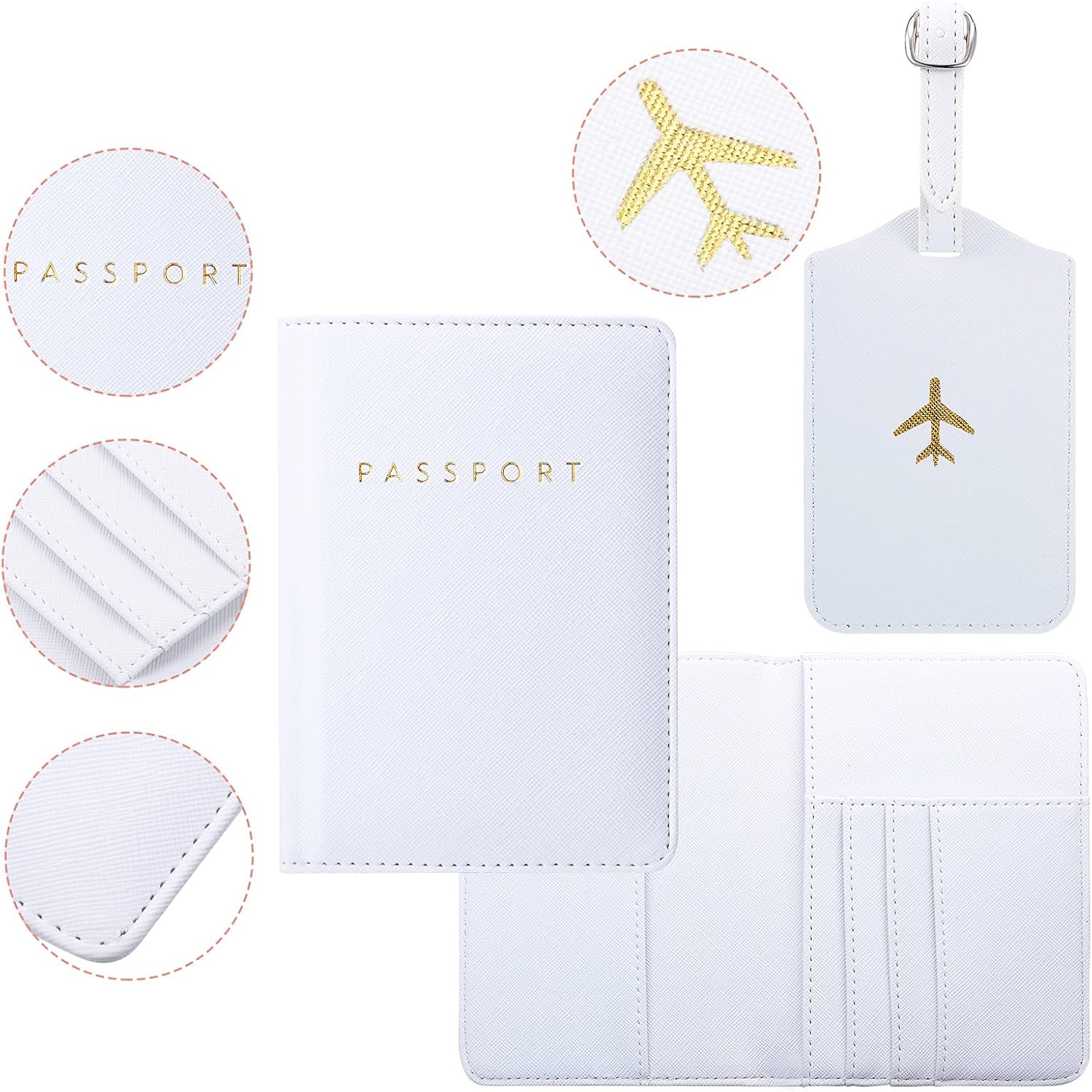 Delicate design: these passport holders with phrases patterns “PASSPORT” and they’re in gold colour, and the bags tags with the aircraft sample, each look beautiful and delicate, appropriate for honeymooners, {couples}, lovers, households and associates