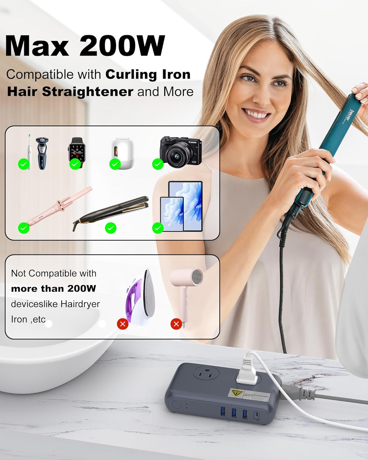 220V to 110V Journey Voltage Converter: Converter for 110V Gadgets converts 220V voltage to 110V voltage with as much as 95% conversion effectivity, for worldwide journey work with home equipment underneath 200 Watt, corresponding to hair straightener, curling iron, electrical shaver, electrical toothbrush, smartphone, laptop computer, Bluetooth speaker and extra.