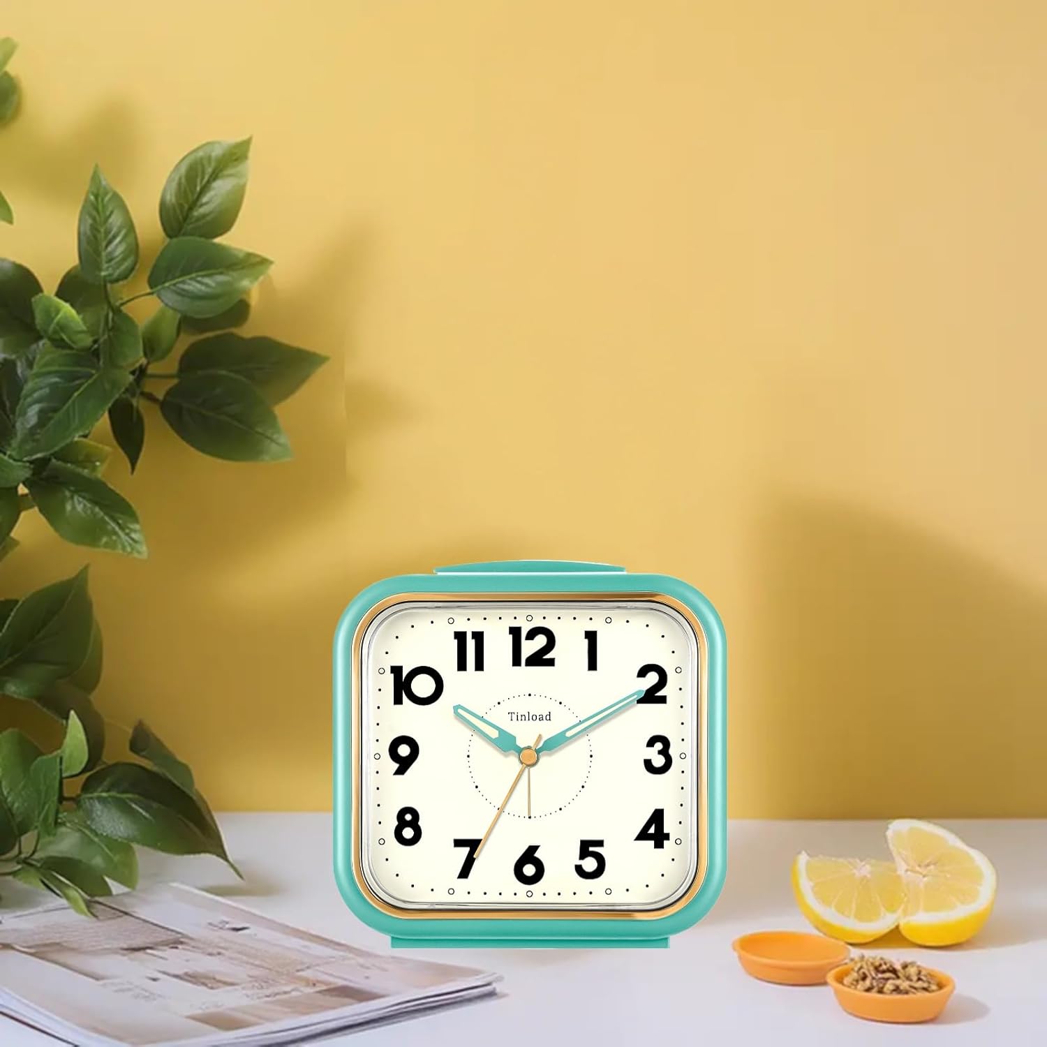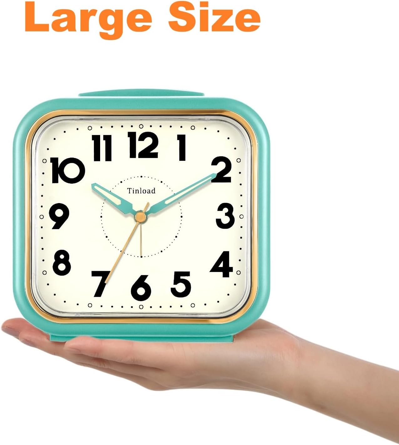 Tremendous Massive Measurement– Measurement: 5.5″ x 5.5″ x 2.2″. Alarm clock stands up at an angle, top quality plastic, sq. face with white dial, black Arabic numerals, good ornament for tabletop, desk & shelf, bedrooms. Additionally massive measurement display and clear daring digits to show time, good alarm clock for aged.