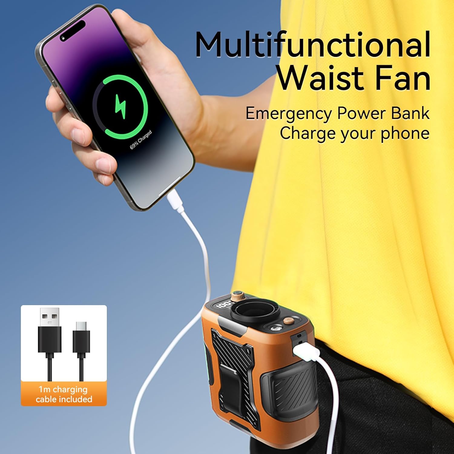 【5-in-1 Multifunctional Waist Fan】: Waist Fan/Neck Fan/Desk Fan/LED Gentle/ Energy Financial institution.Wearable: Waist/Belt/Neck; Convertible: Tabletop Use with Stand; Emergency Options:Energy Financial institution (Cellular Charging);LED Gentle with SOS Mode. Transportable Design for Indoor/Out of doors Use