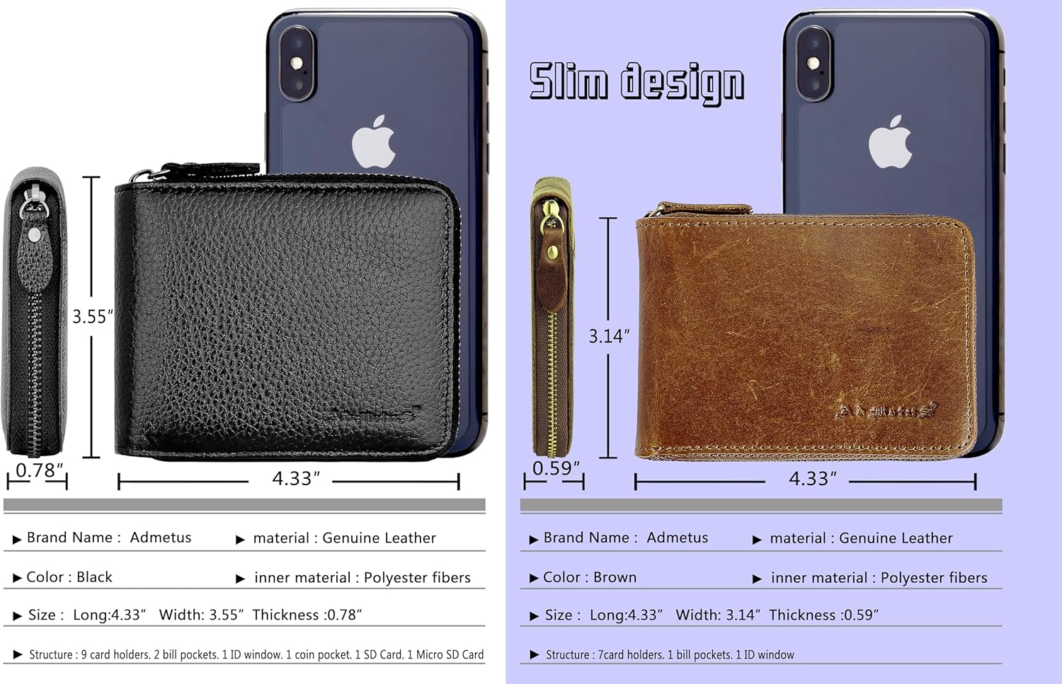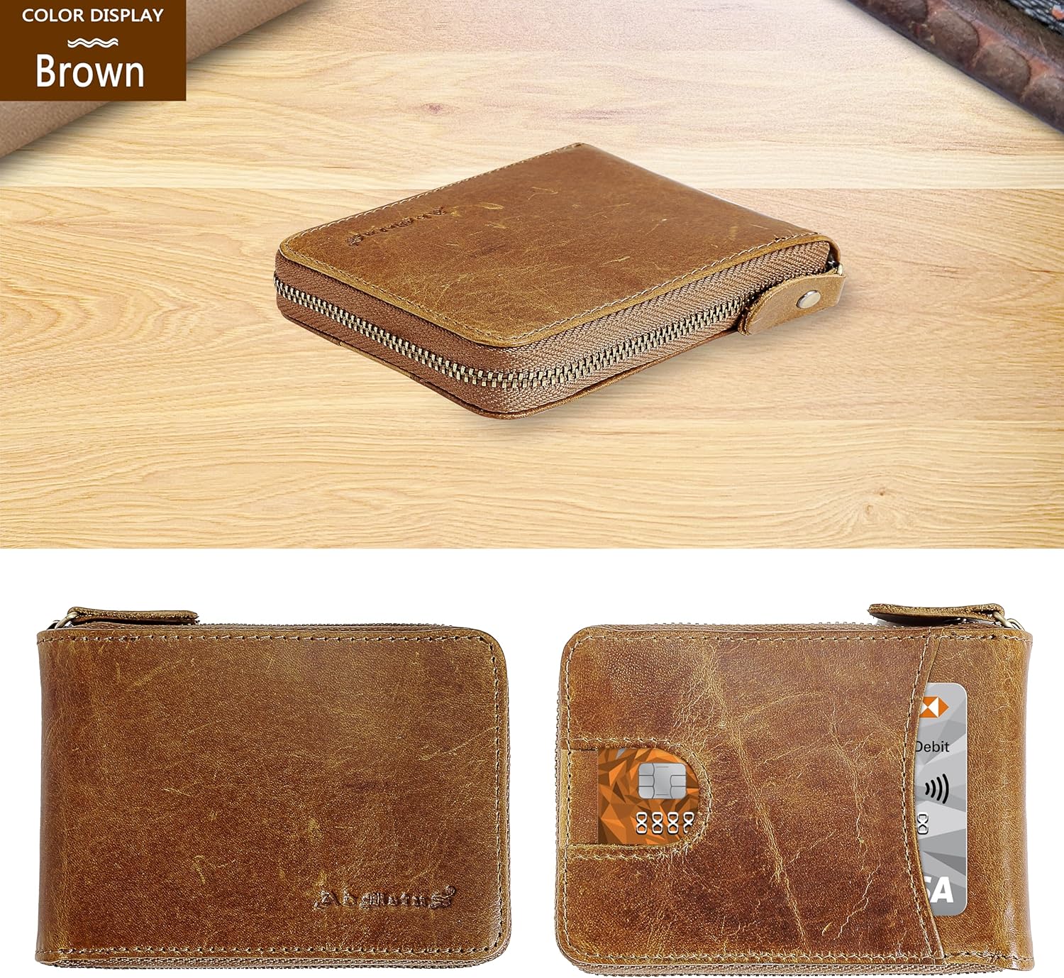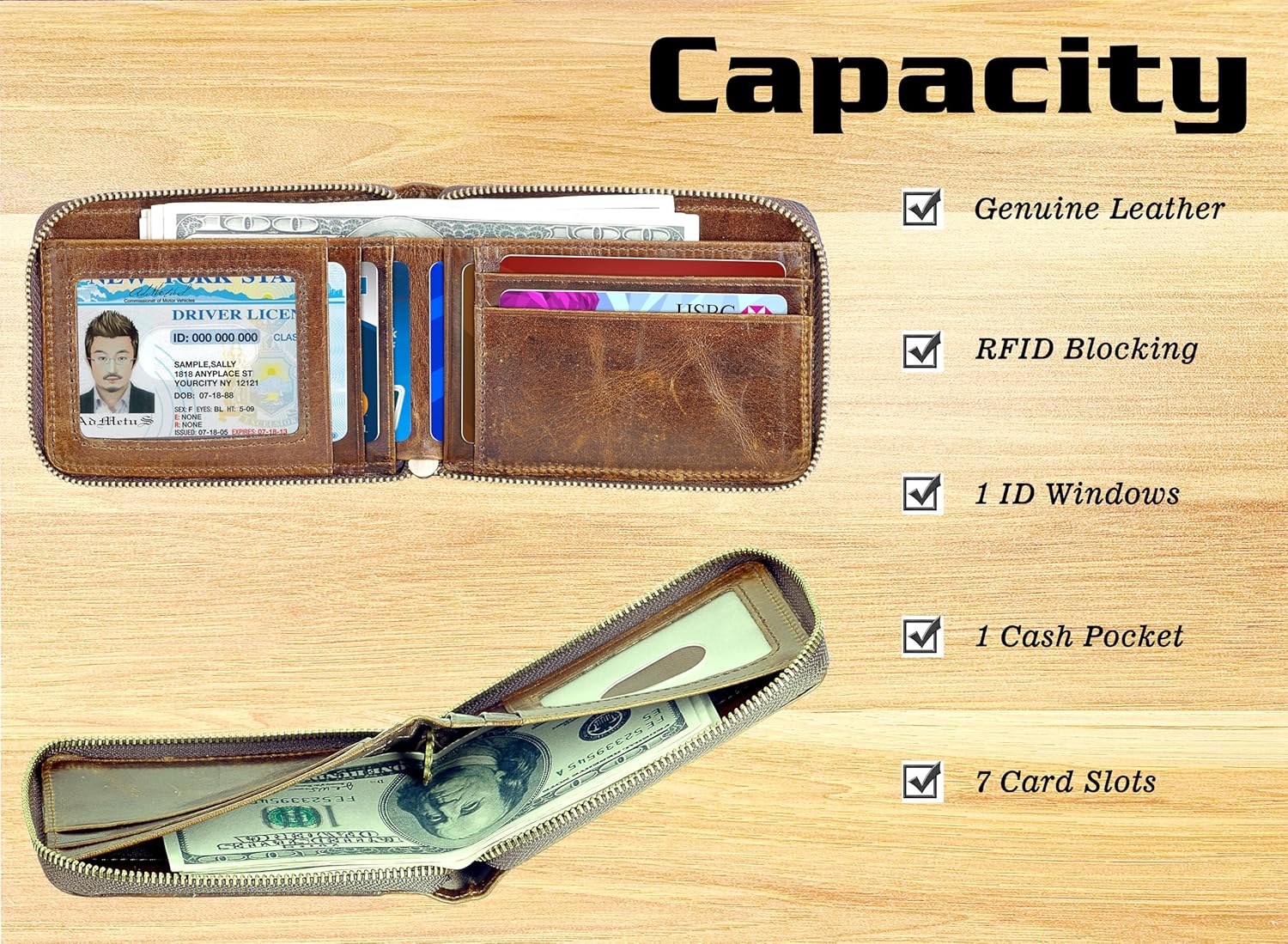Admetus Men’s Zipper Wallet Leather Bifold Wallets Slim RFID Blocking Zip Around Credit Card Holder Compact Small Wallet
