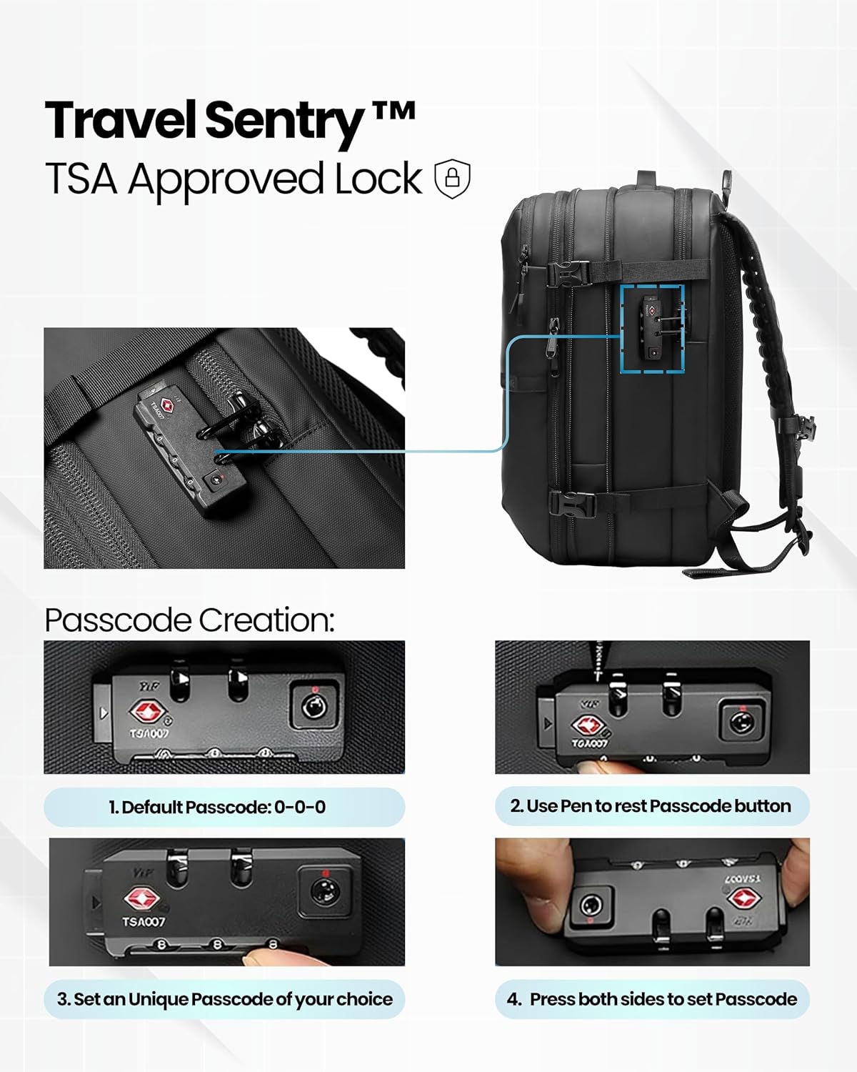 【Your Preferrred Journey Companion】The AirVault backpack comes outfitted with a TSA-approved mixture lock, USB 4.0 charging ports, a baggage attachment strap, thickened and widened shoulder straps, breathable supplies, and high-quality zippers.