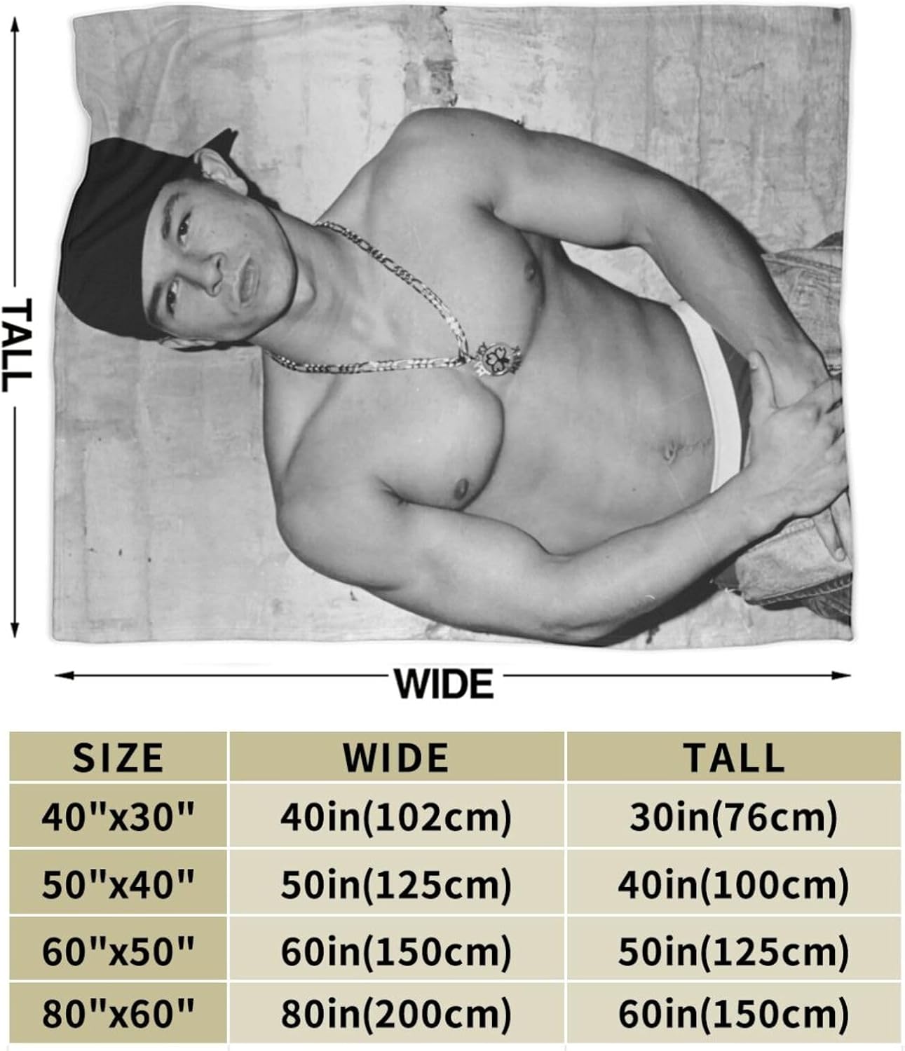Our Mark Wahlberg throw blankets can be found in three sizes: 40*30 inches,50*40 inches, 60*50 inches, 80*60 inches. To offer you extra selections.