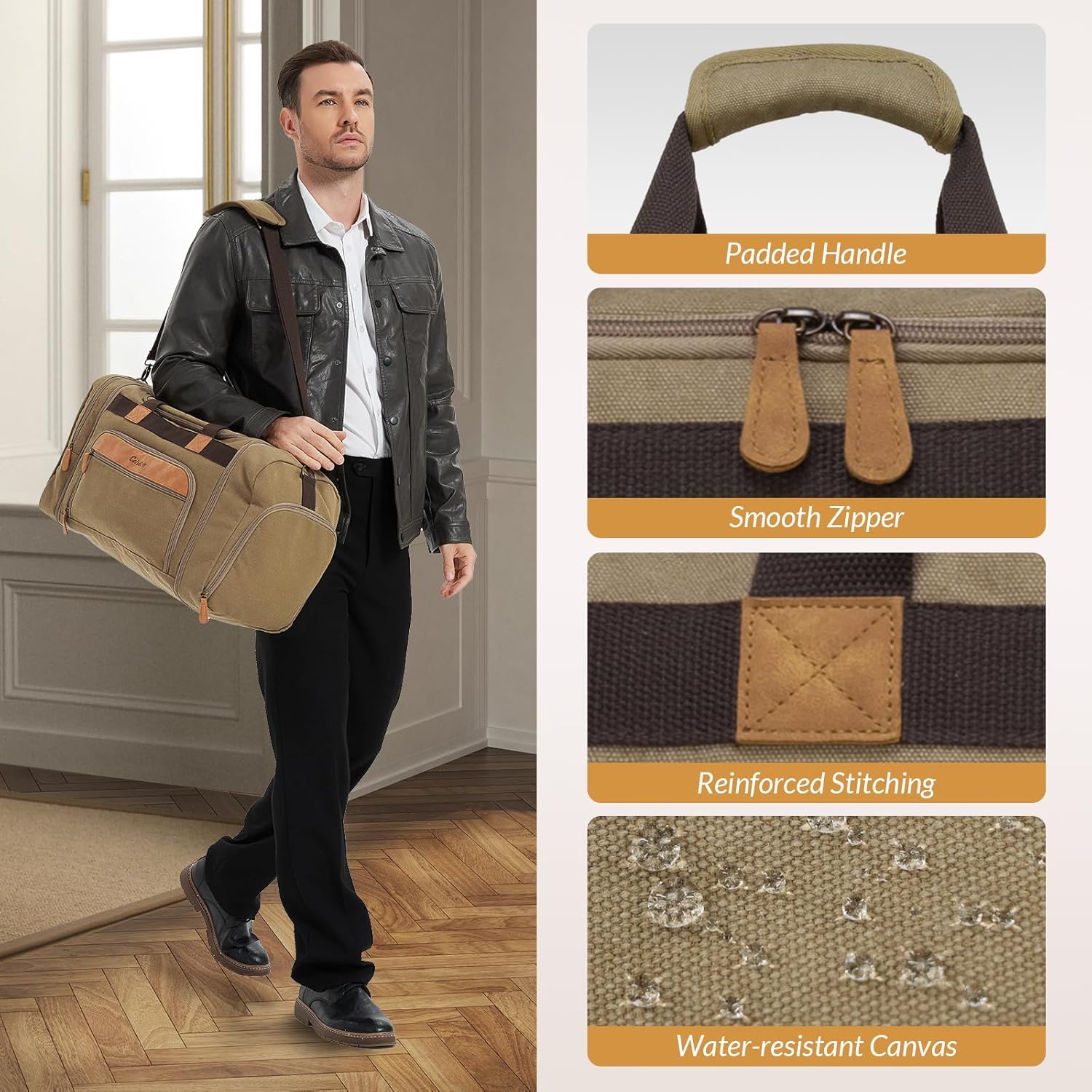 Expandable design: Canvas journey duffel bag measures 20.5(L) x 10.5(W) x 12(H) inches (42.3L), and will be prolonged to 24.5 inches (50.6L) with two aspect zippers. The interior capability is massive sufficient to retailer garments, sneakers, and different each day necessities for a 5-7 day journey