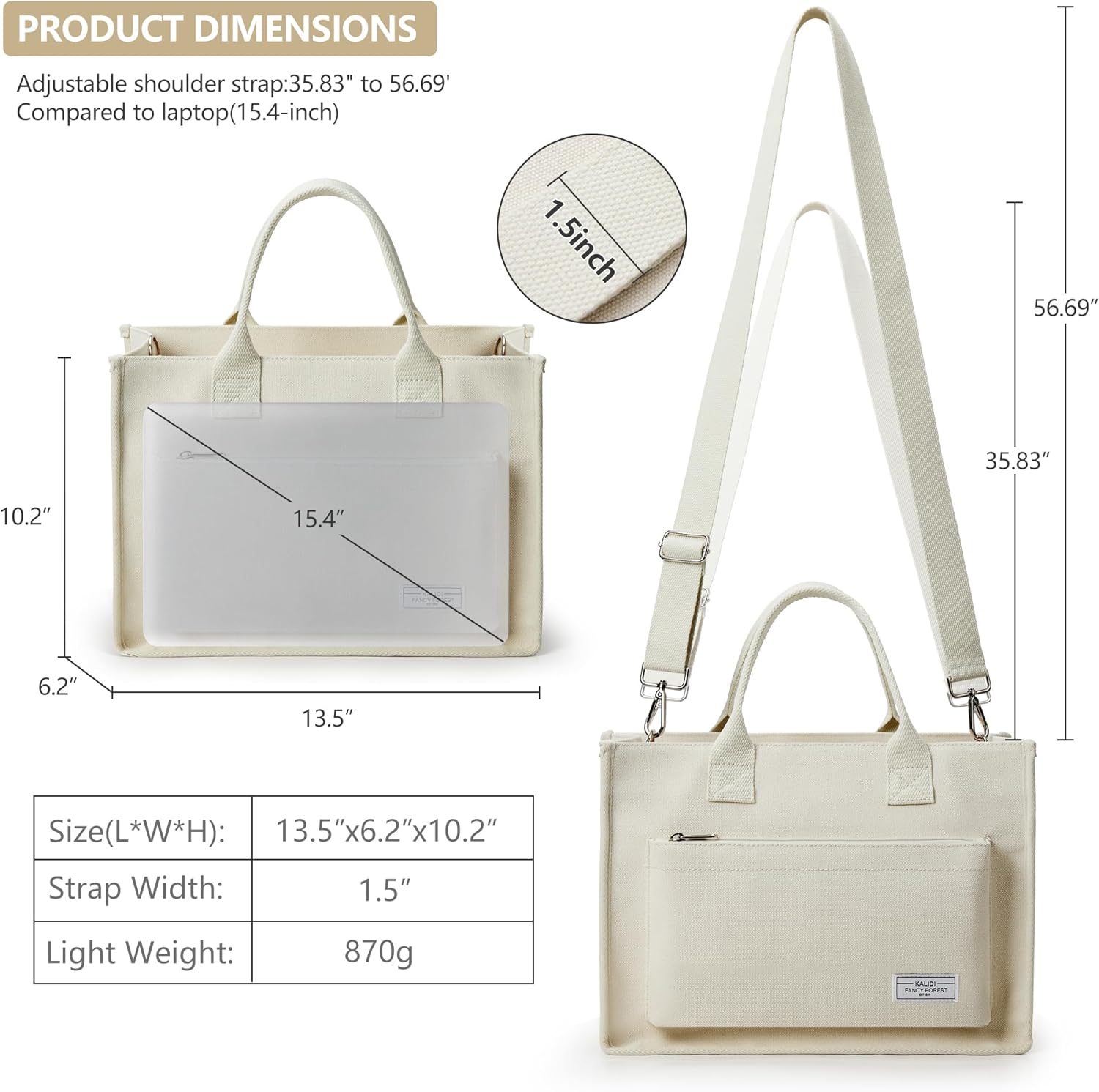 Canvas Tote Bag for Women Shoulder & Crossbody Handbag with Multi Pockets Zipper Ideal for Work Office Travel & Daily Use