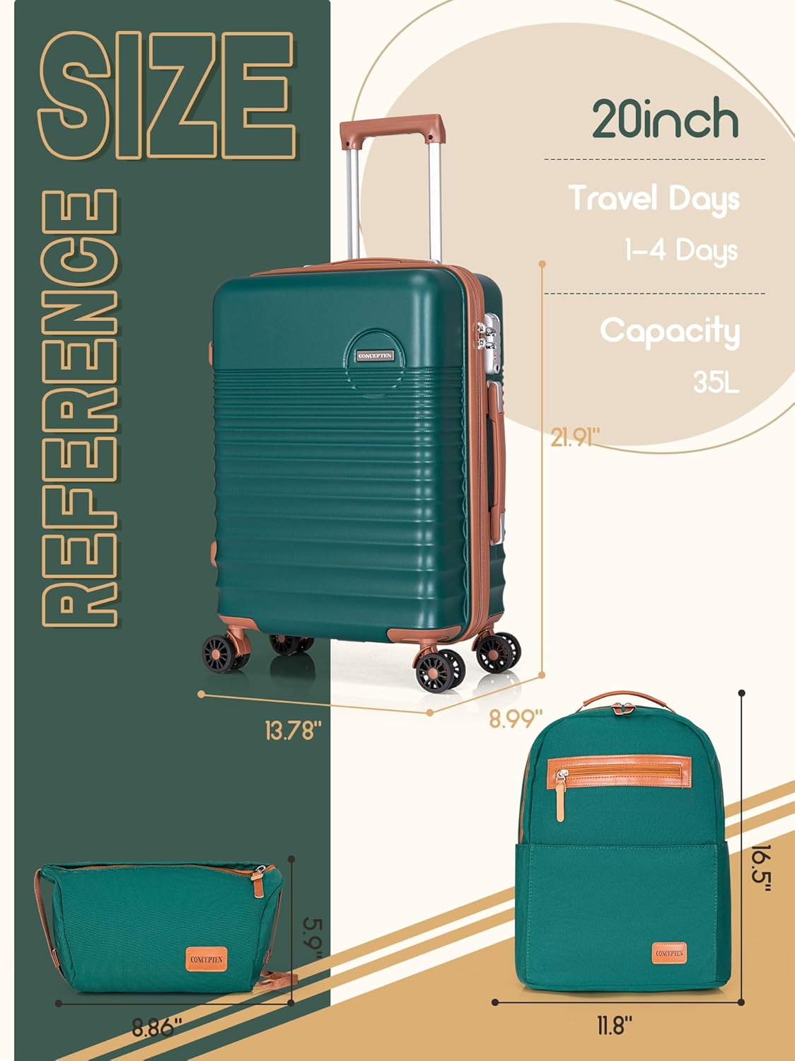 AIRLINE APPROVED SUITCASE – 22x14x9 keep it up baggage is appropriate for work journey, holidays, or enterprise journeys. General Dimensions: 22x14x9inch (together with wheels), Capability: 35 L. The CONCEPTEN carry-on suitcase claimed a free 3-year guarantee. If there may be any concern please be happy to tell us.