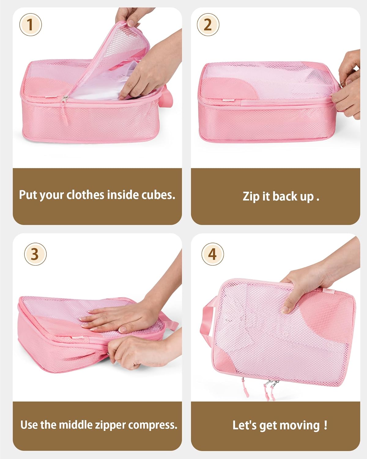 【SAVE 50% OF SPACE】Our Packing Cubes come outfitted with an environment friendly ZIP compression system, saving you each SPACE and TIME when packing. The excessive compression charge permits 1 suitcase to meet the position of two, and its excessive effectivity lets you focus extra in your journey.