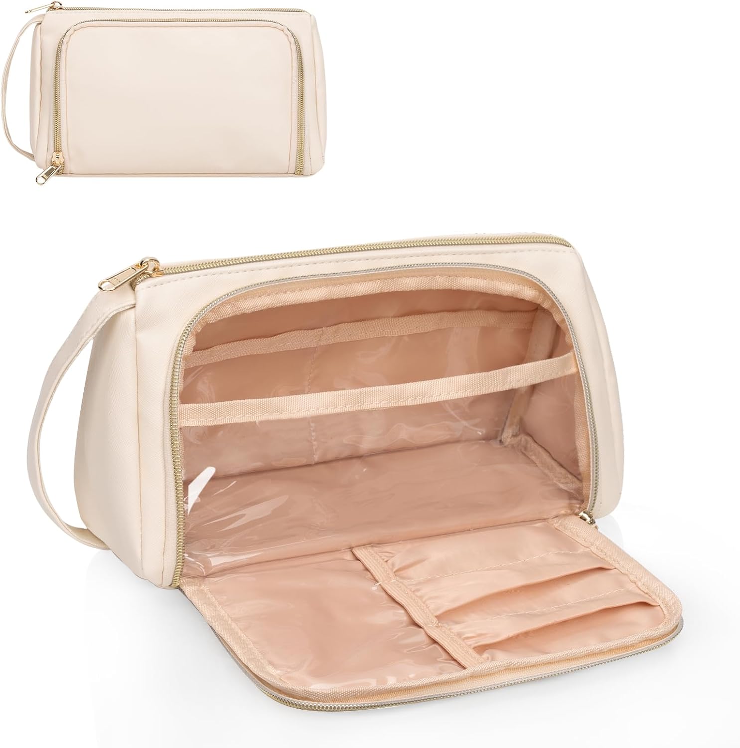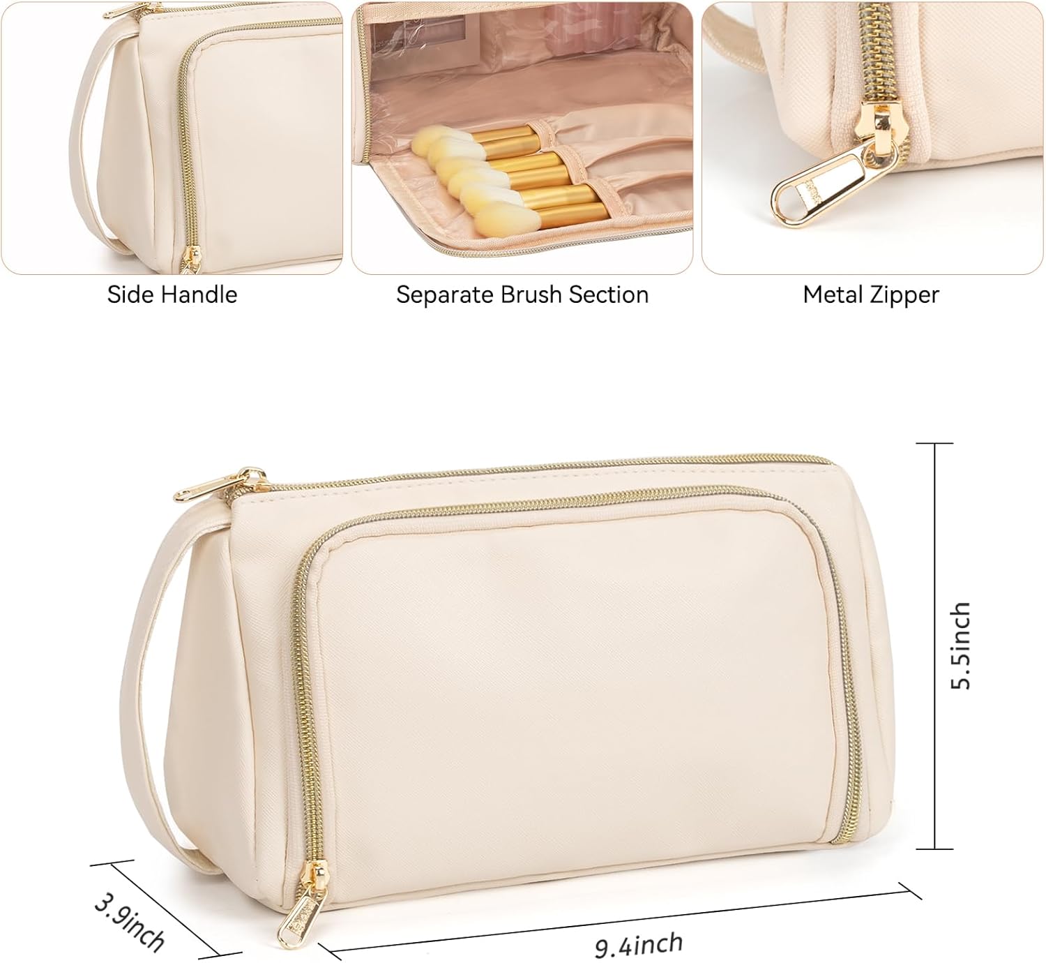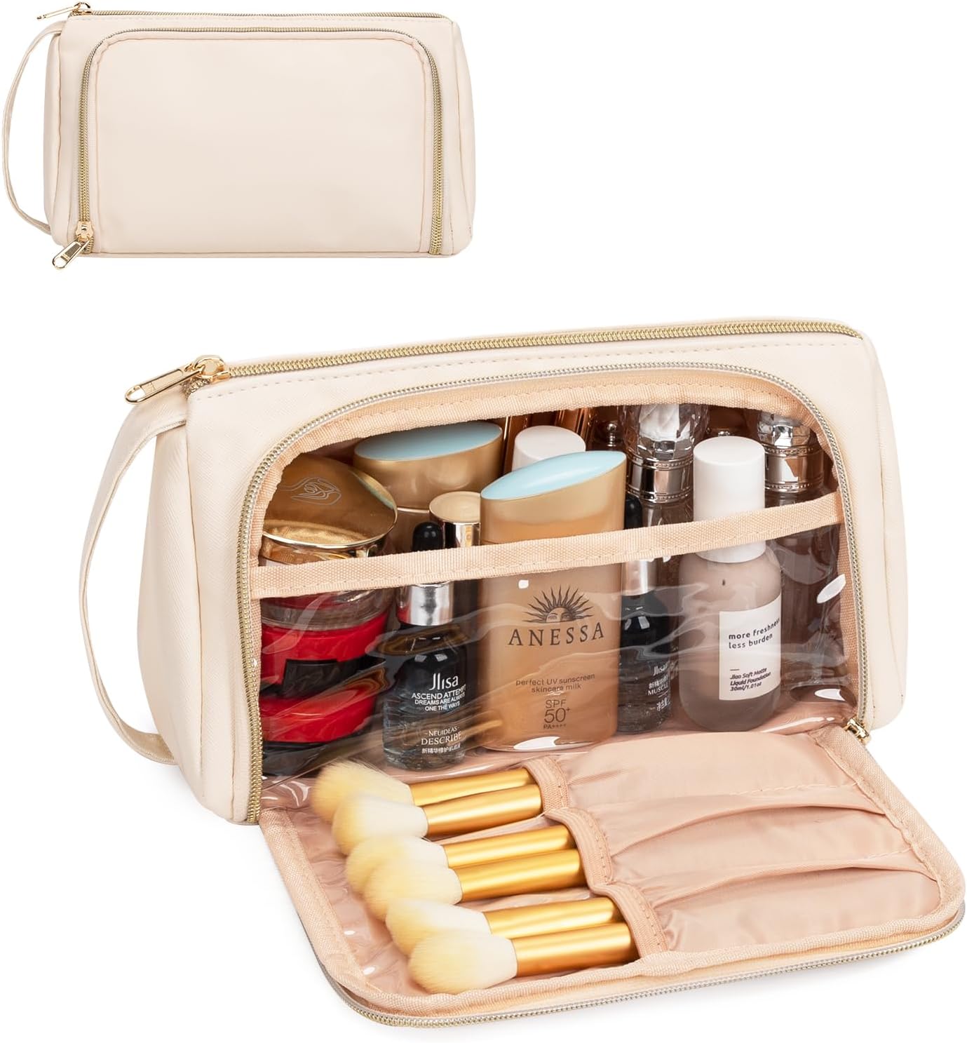 Prospects recognize the make-up bag’s dimension, which holds travel-sized toiletries and make-up, and its high quality, noting it holds up properly after one use. The design is neat, and so they like the 2 zipper openings and the organizer flap that retains brushes separated. Prospects discover it makes touring with make-up simpler, retains brushes organized, and affords nice worth for the worth.