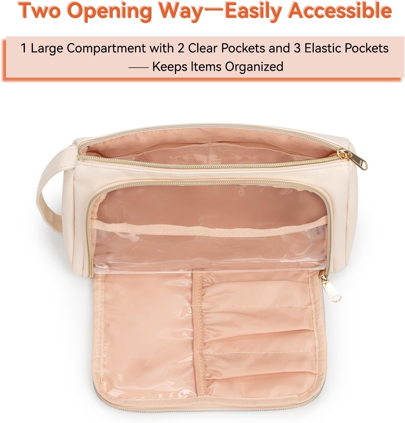 ☑ Two Opening — The duel openings make the make-up organizer bag simple to entry. You may take the make-up from the highest or the aspect.