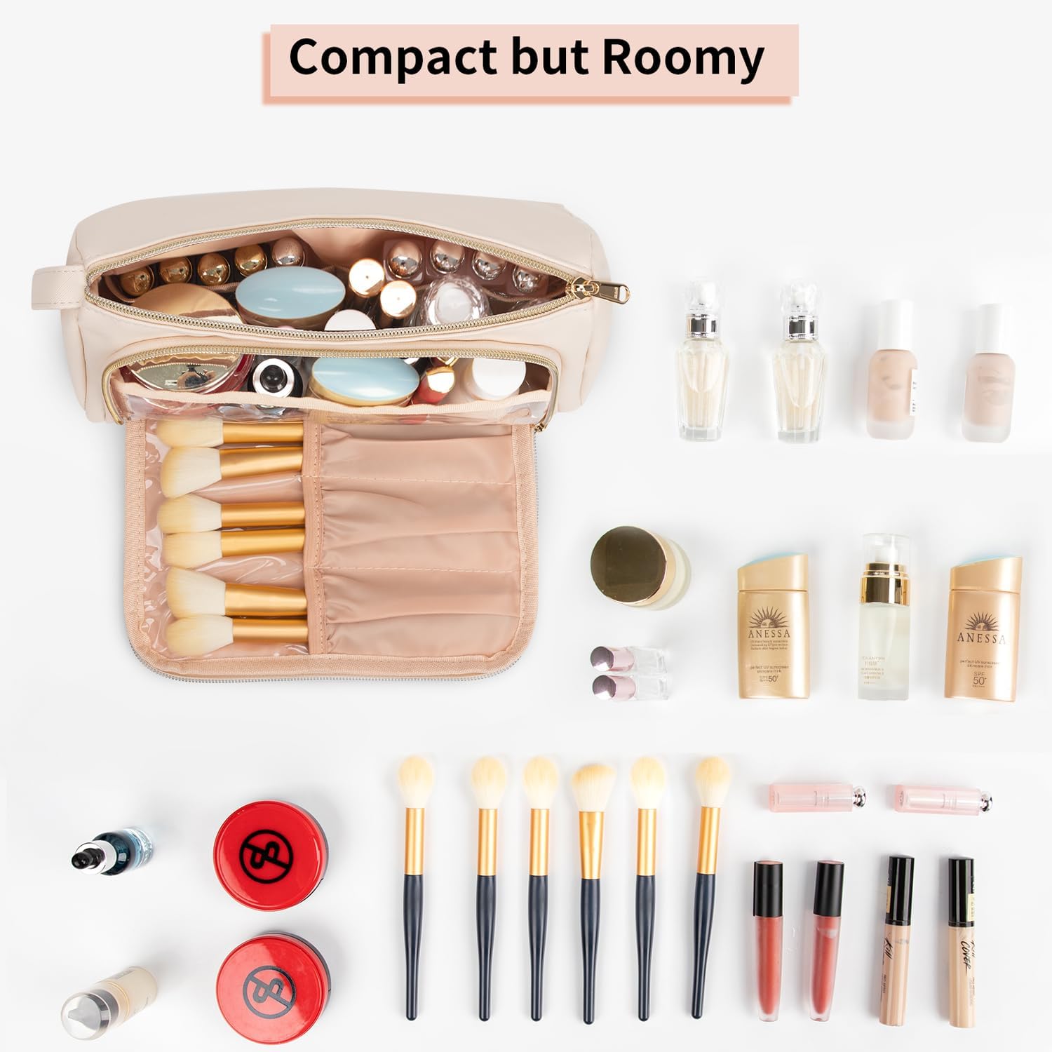 CUBETASTIC Makeup Bag, Cosmetic Bag for Women, Small Travel Make Up Storage Organizer with Makeup Brush Compartment, Portable & Waterproof