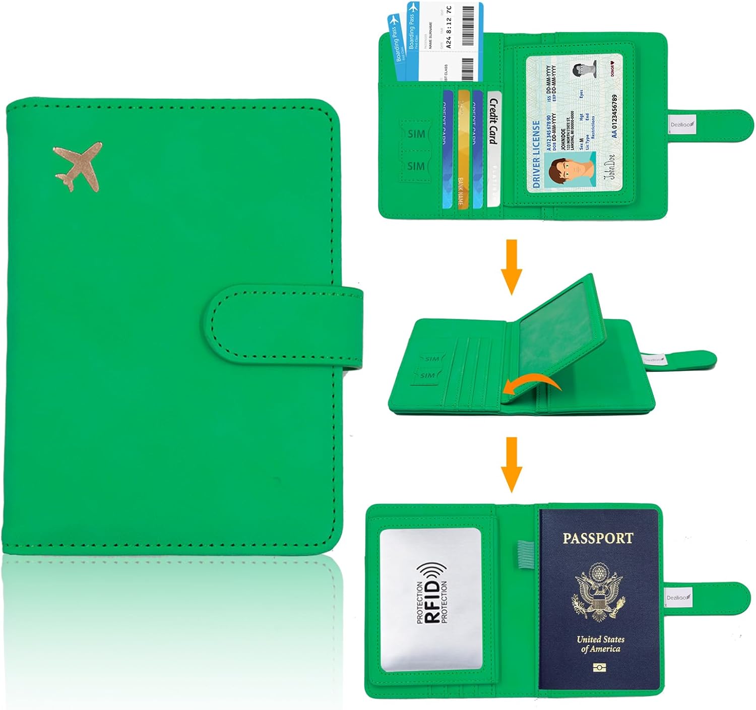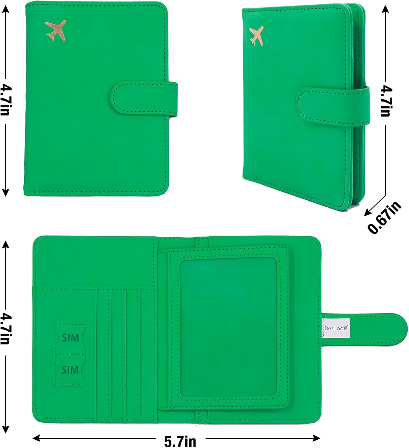 Deziliao Passport and Vaccine Card Holder Combo, PU Leather-based Passport Holder with Vaccine Card Slot, Passport Pockets for Males and Ladies (Grass green-fly)