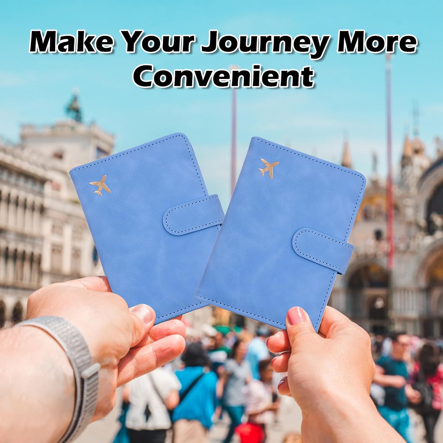 Deziliao Passport and Vaccine Card Holder Combo, PU Leather-based Passport Holder with Vaccine Card Slot, Passport Pockets for Males and Girls (Gentle Blue-fly)