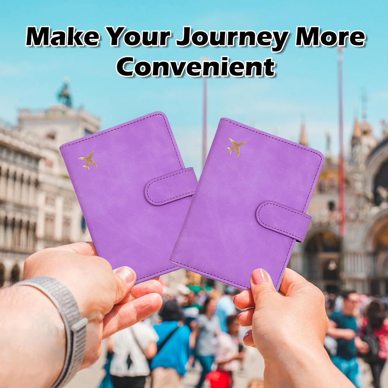 Deziliao Passport and Vaccine Card Holder Combo, PU Leather-based Passport Holder with Vaccine Card Slot, Passport Pockets for Males and Ladies (Purple-fly)