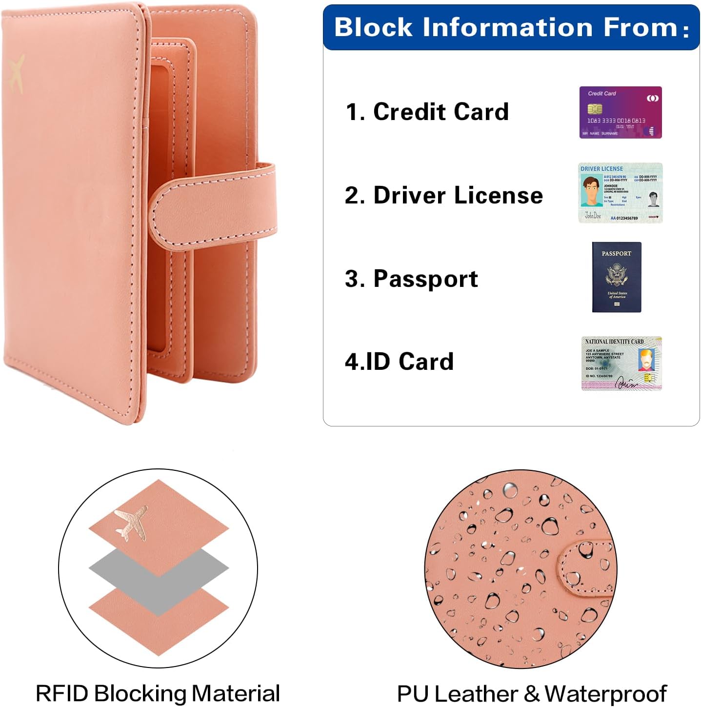 Deziliao Passport Holder for Women and Men, Passport Holder Card Slots, RFID Blocking Passport Wallet, Travel Essentials Cute Passport Cover Passport Case (Pink)