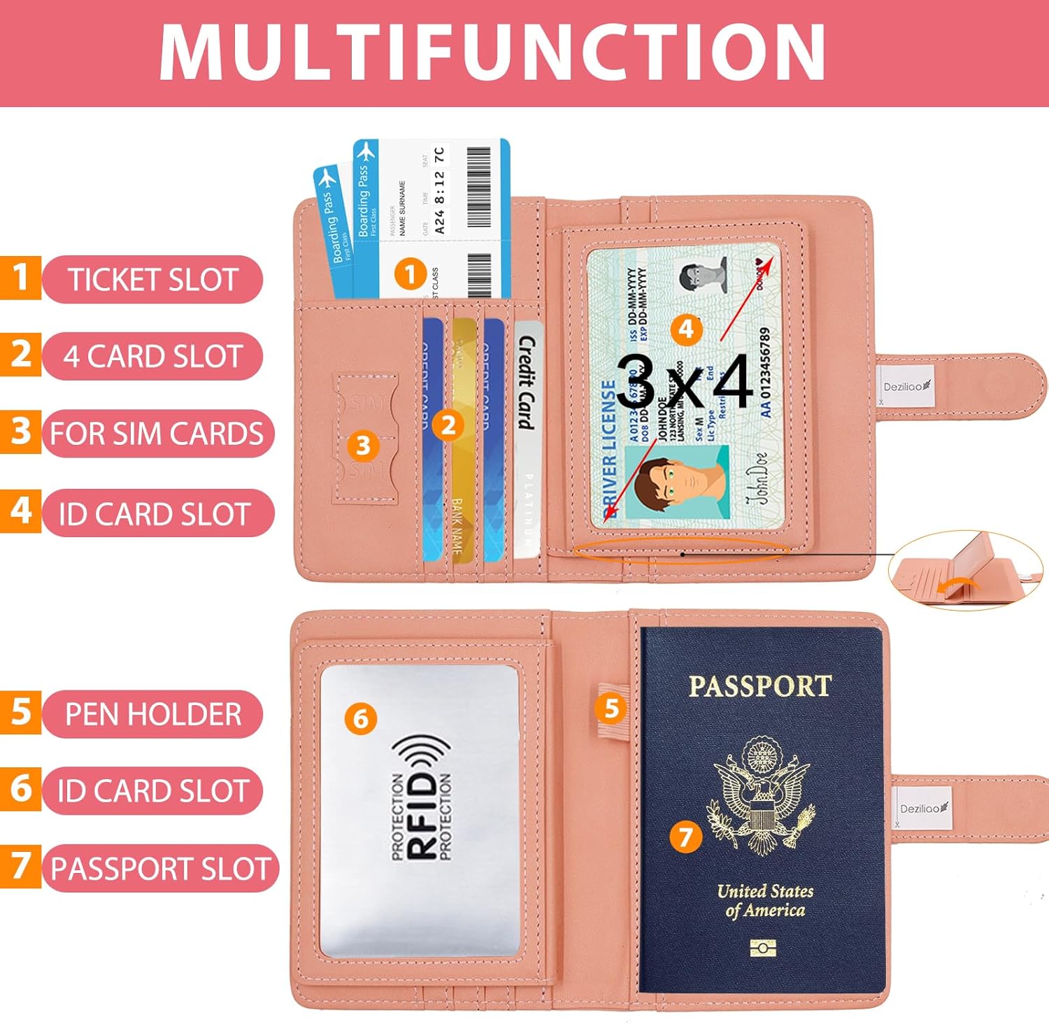 Deziliao Passport Holder for Girls and Males, Passport Holder Card Slots, RFID Blocking Passport Pockets, Journey Necessities Cute Passport Cowl Passport Case (Pink)