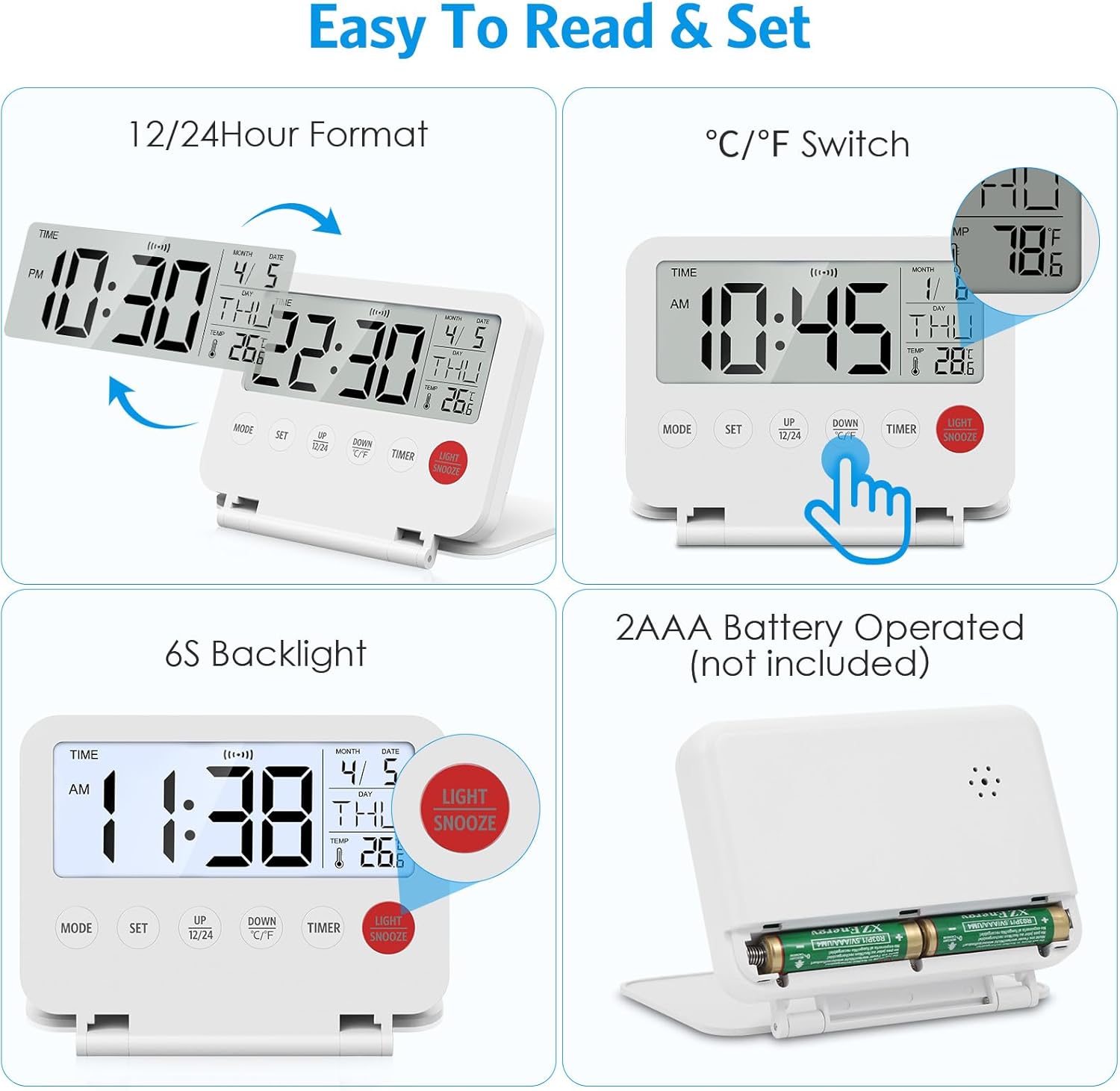 【Moveable & Foldable Design】Extremely-thin and foldable, this journey alarm clock small foldable matches completely in your hand if you end up out and about, supreme for vacationers. Features a protecting cowl that protects the alarm clock from scratches and doubles as a stand for handy desktop use