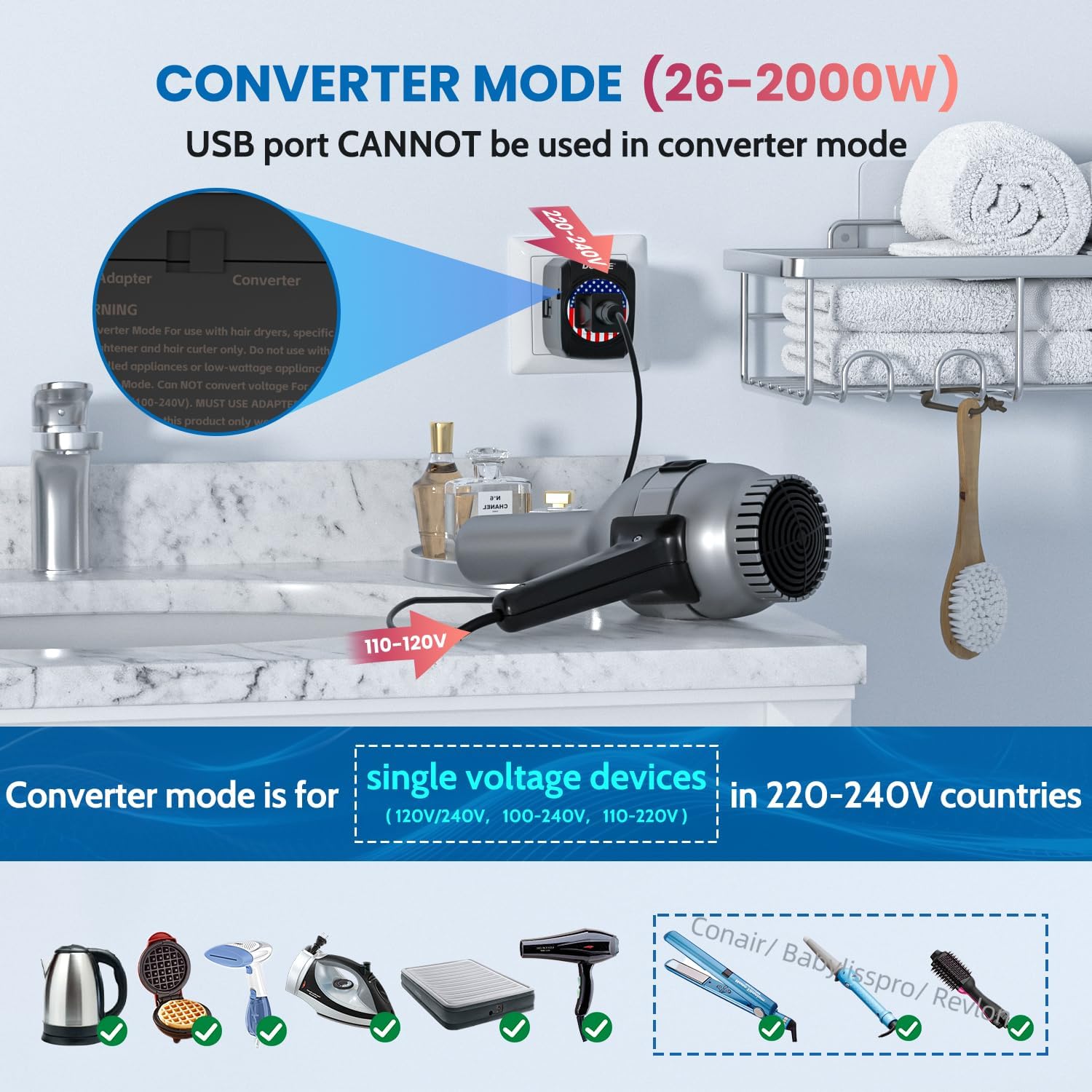 Select Converter Mode for utilizing hair dryer in 220-240V international locations. Word: Dyson and Dyson-like hair dryers are usually not out there Journey Adapter Converter for Hair Straightener/ Curling Iron