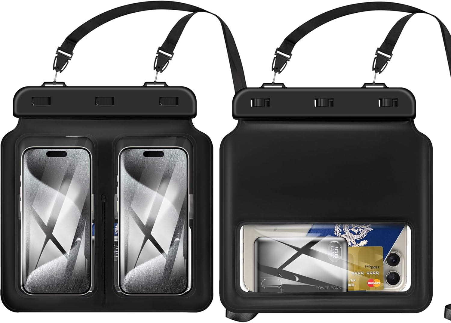 【Massive Capability & Organized Storage】 waterproof pouch securely holds two telephones (secured by interior straps) and journey necessities on the similar time. It can also maintain an influence financial institution and your cellphone, enabling direct charging contained in the waterproof pouch throughout actions. Spacious sufficient to retailer pockets, card, sun shades, sunscreen, lipstick, keys, powers, earphones and different valuables. Common compatibility ensures it matches all cellphone fashions as much as 7.0” together with iPhone 16/15/14/13/12/11 Professional Max Plus, Galaxy S25/S24/S23/S22/S21 Extremely, Google Pixel and extra