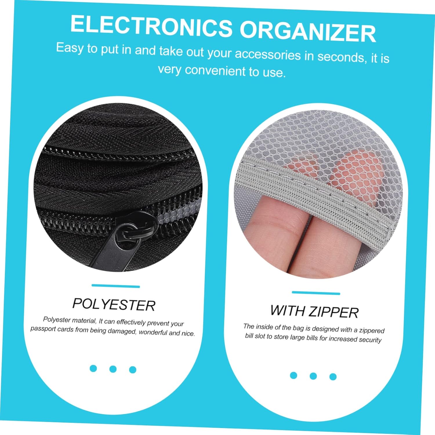 – Appropriate for energy financial institution, information cable, USB drive, telephone, moveable arduous disk, and and so forth electronics accent carrying bag.