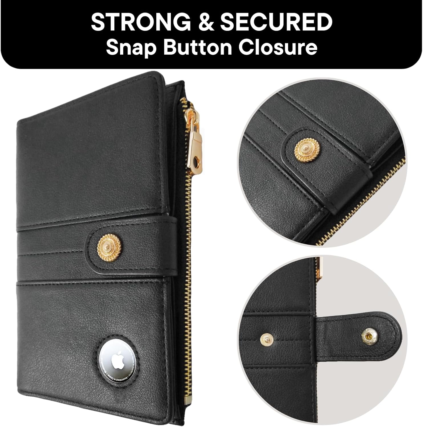 Air Tag Holder—This pockets contains a sturdy Air Tag slot and a keychain. The air tag will not be included.