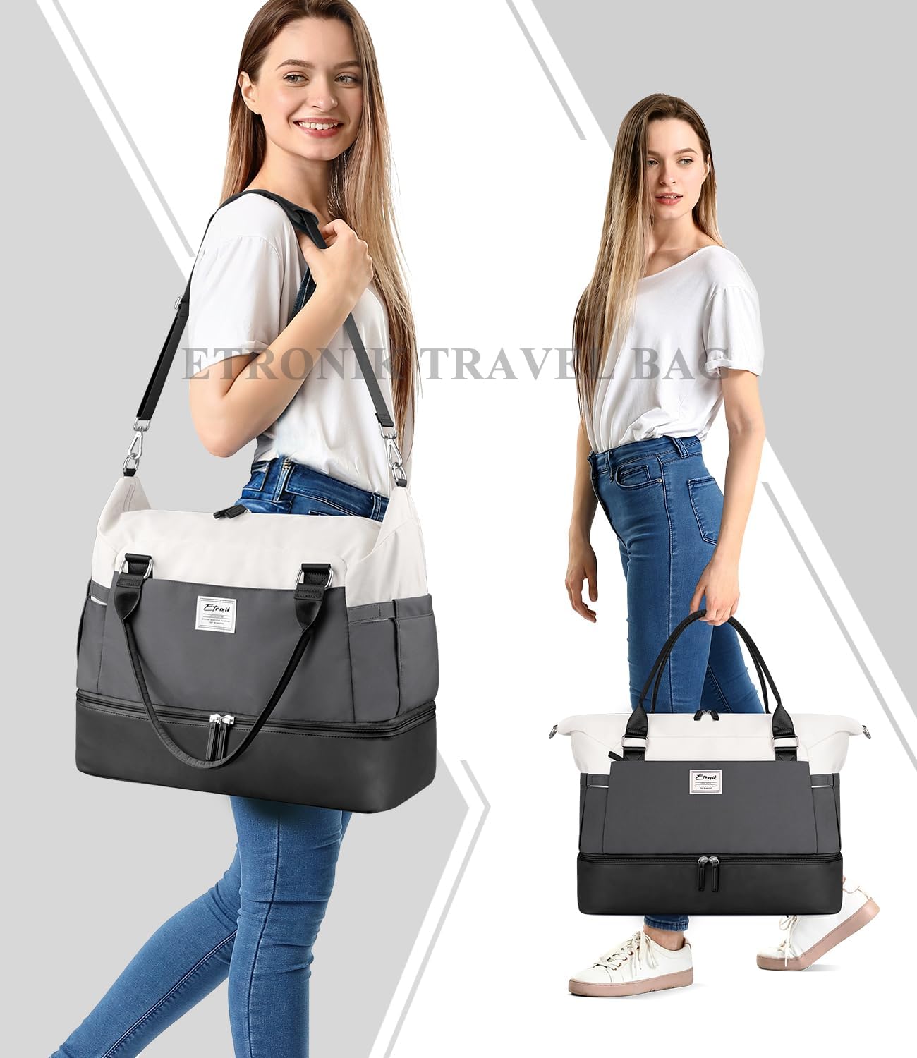 ETRONIK Weekender Bags for Women, Personal Item Travel Bag with Shoe Compartment, Carry On Overnight Bag with Toiletry Bag, Gym Duffel Bag with Wet Pocket for Travel, Sports, Hospital Black&Grey