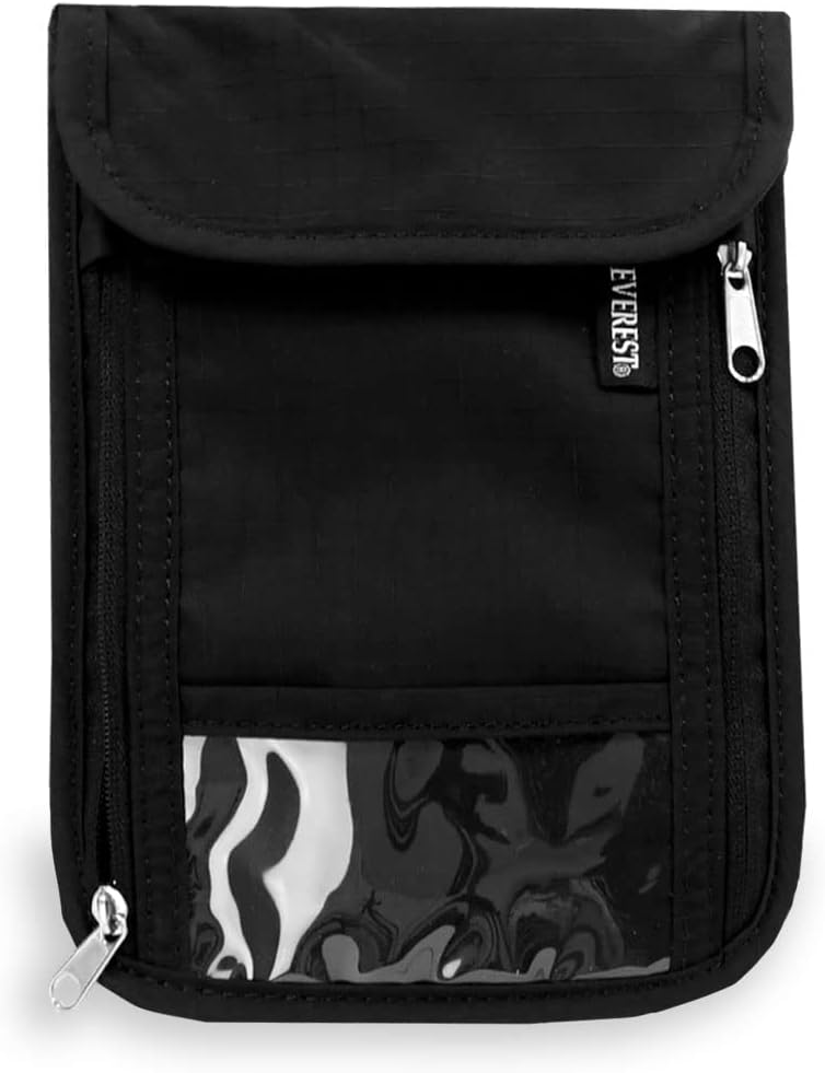 A primary within the Everest assortment, this RFID blocking neck pouch is the proper merchandise to your travels. Designed to be slim and discreet, the sunshine weight nylon supplies present no discomfort for carrying across the neck. Designed to perform like a pockets, it will probably carry all of your valuables together with your passport.