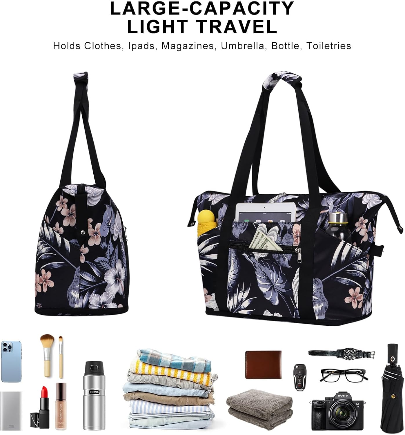 Expandable Duffel Bag for Women with Trolley Sleeve/Wet Pocket Weekender Travel Tote Large Carry On Overnight Luggage