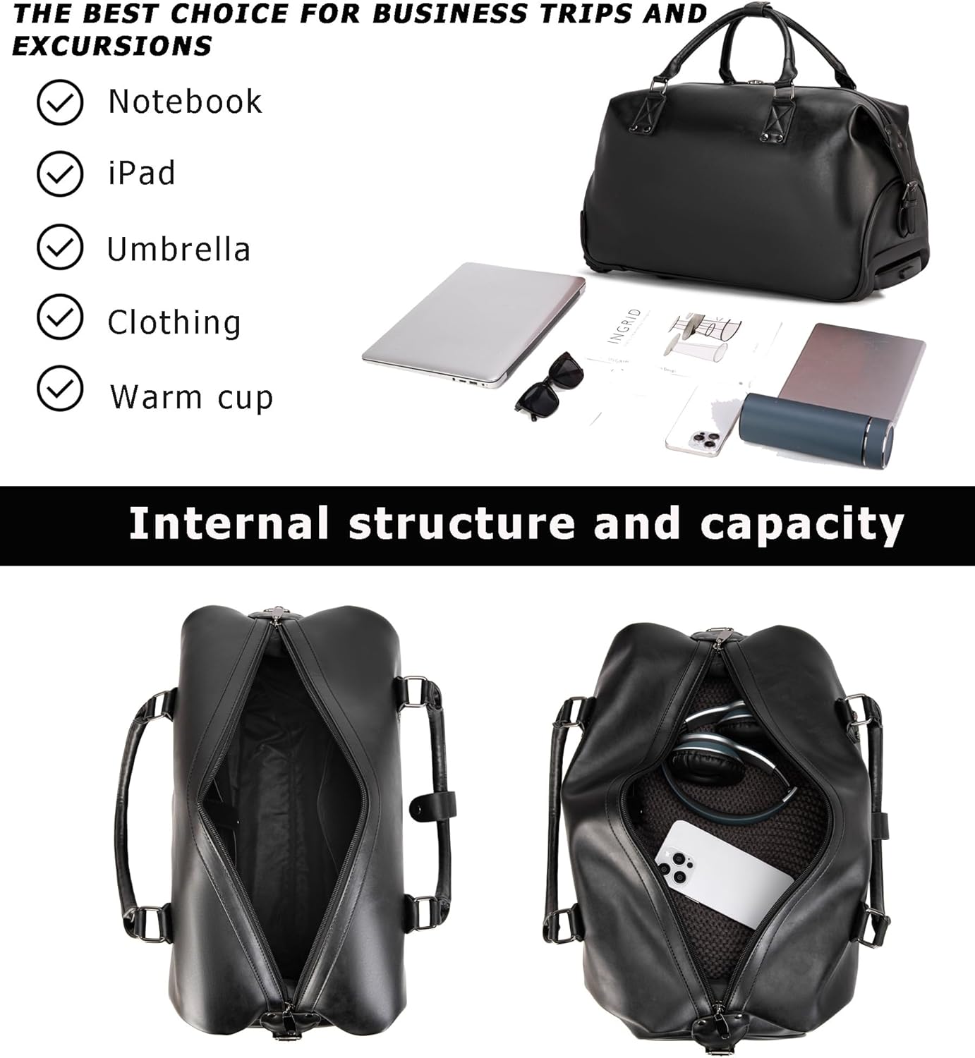 Roomy Capability: This rolling weekender bag is designed with a number of pockets to maintain your private objects organized, options 1 roomy primary area together with 1 laptop computer compartment, providing ample area for all of your journey necessities. Good for organizing your belongings effectively.