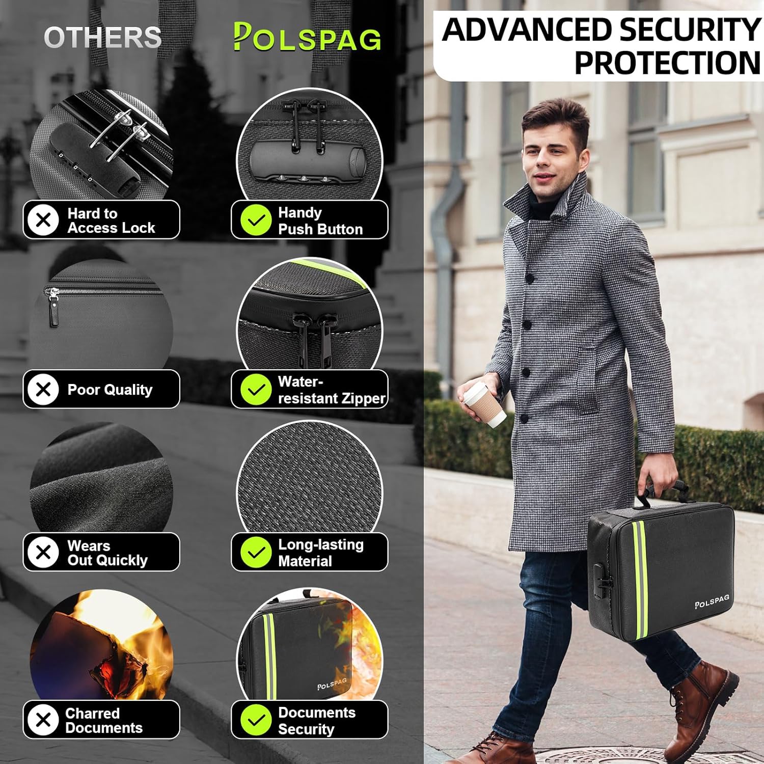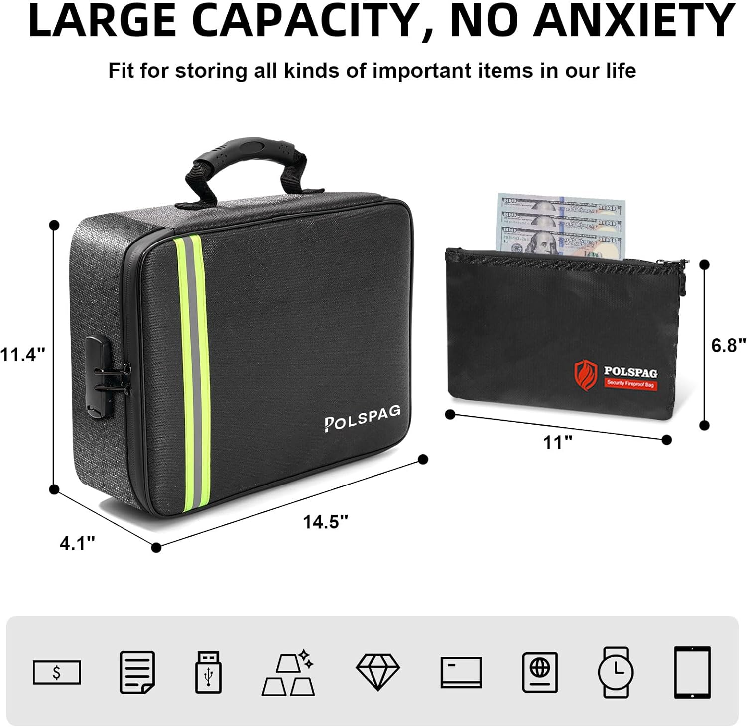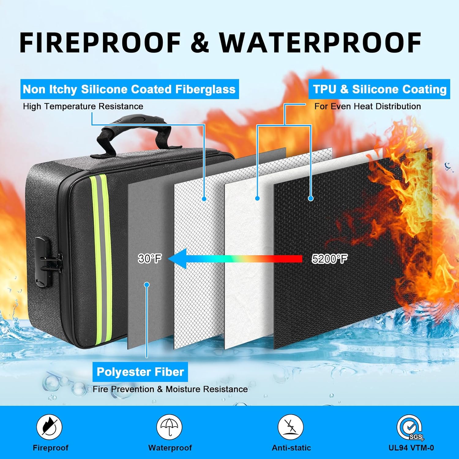 FIREPROOF & WATER RESISTANT – Handed SGS TEST(UL94 VTM-0 Licensed) & NFPA701 TEST. Polsbag fireproof doc organizer is fabricated from non-itchy silicone coated fiberglass materials, offering a comfortable outer shell. It will probably face up to temperatures as much as 5200℉, protecting your paperwork secure in case of a fireplace. Waterproof zippers and development materials that repels water add an additional layer of safety towards unintended spills or water harm.(Extended direct contact with humid environments is just not beneficial)