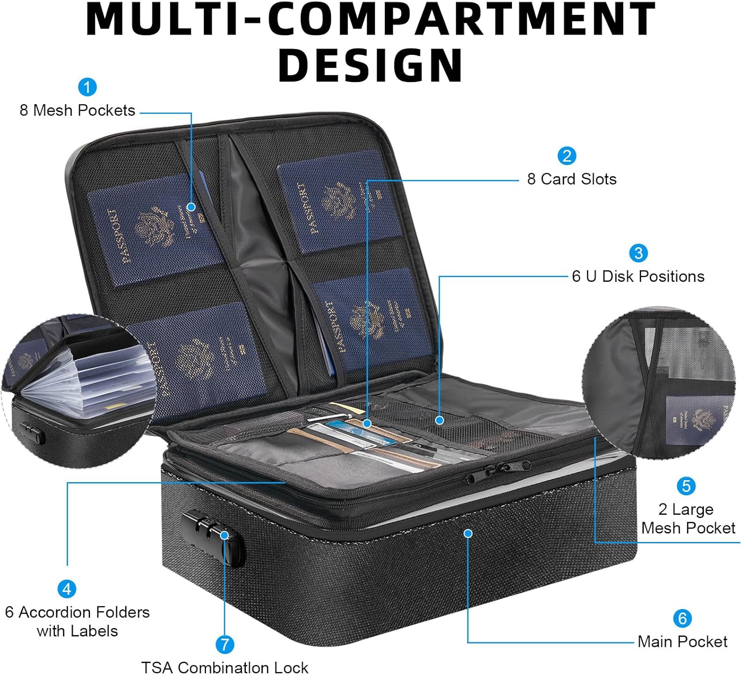 ACCORDION FILE ORGANIZER- AMPLE STORAGE CAPACITY – This essential doc storage organizer bag with deal with has a big dimension of 14.5″ x 11.4″ x 4.1″ which provides ample cupboard space. It contains card slots, U disk pockets, 6 accordion folders with labels, mesh luggage, and a predominant pocket, aiding you to prepare your essential paperwork independently. You may securely retailer authorized paperwork, passports, beginning certificates, ID playing cards, licenses, contracts, in addition to money, jewellery, valuable images, laptops, and different worthwhile gadgets.