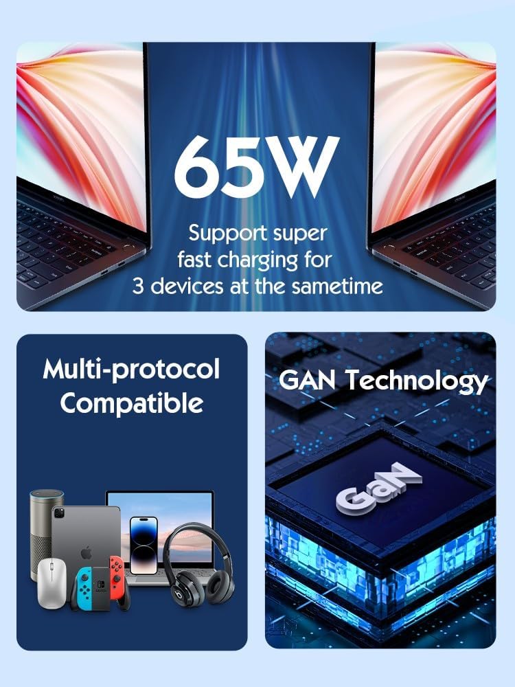 65W Max Twin Port Charging: Whether or not you employ each USB-C ports or a mixture of USB-C and USB-A ports, take pleasure in quick and environment friendly charging with a most output of 65W.