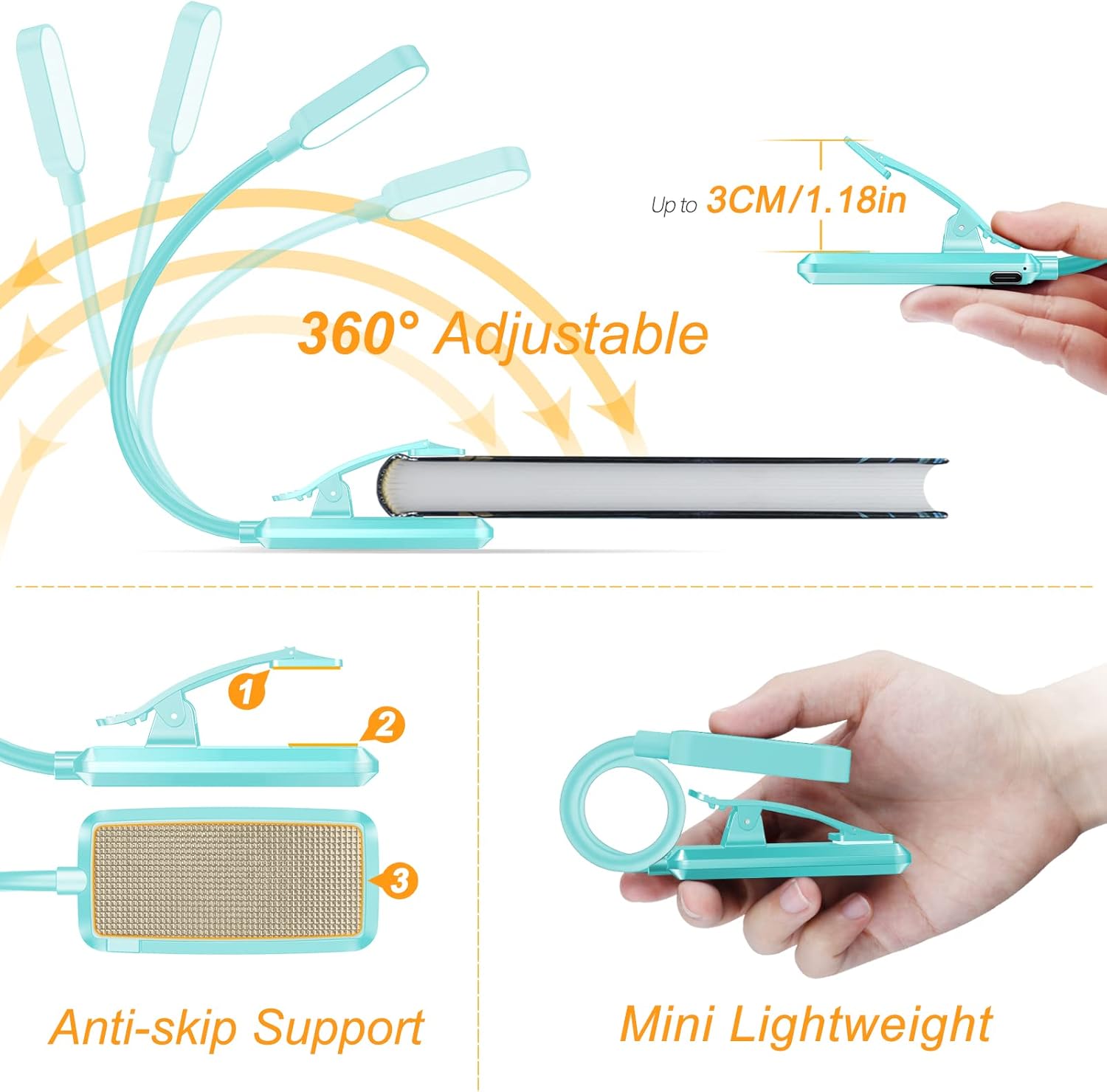 360° Versatile Neck and Sturdy Clip: 360° bendable gooseneck may be rotated to any angle you need. Anti-skid clip design makes it securely clamp on e-readers, books, cabinets and wherever else with out worrying about leaving marks, scratches or transferring