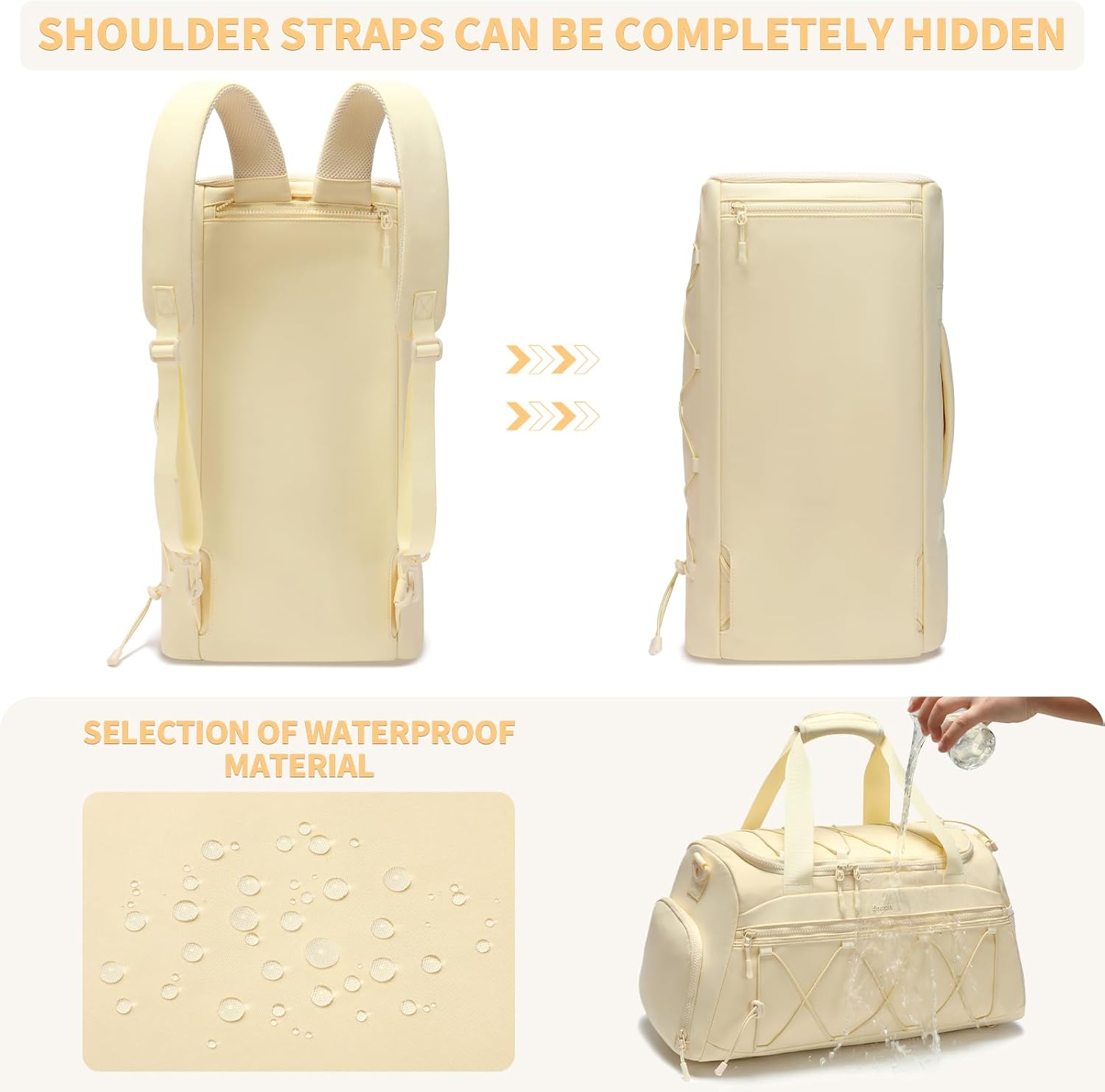Versatile Design Sports activities Duffel Bag: This weekender bag options exterior resilient strings for yoga mat holder. And it gives totally different carrying choices, together with hidden backpack strap, adjustable and removable crossbody strap. It simply converts between a backpack, crossbody bag or tote purse, making it good for journey and fitness center sports activities wants