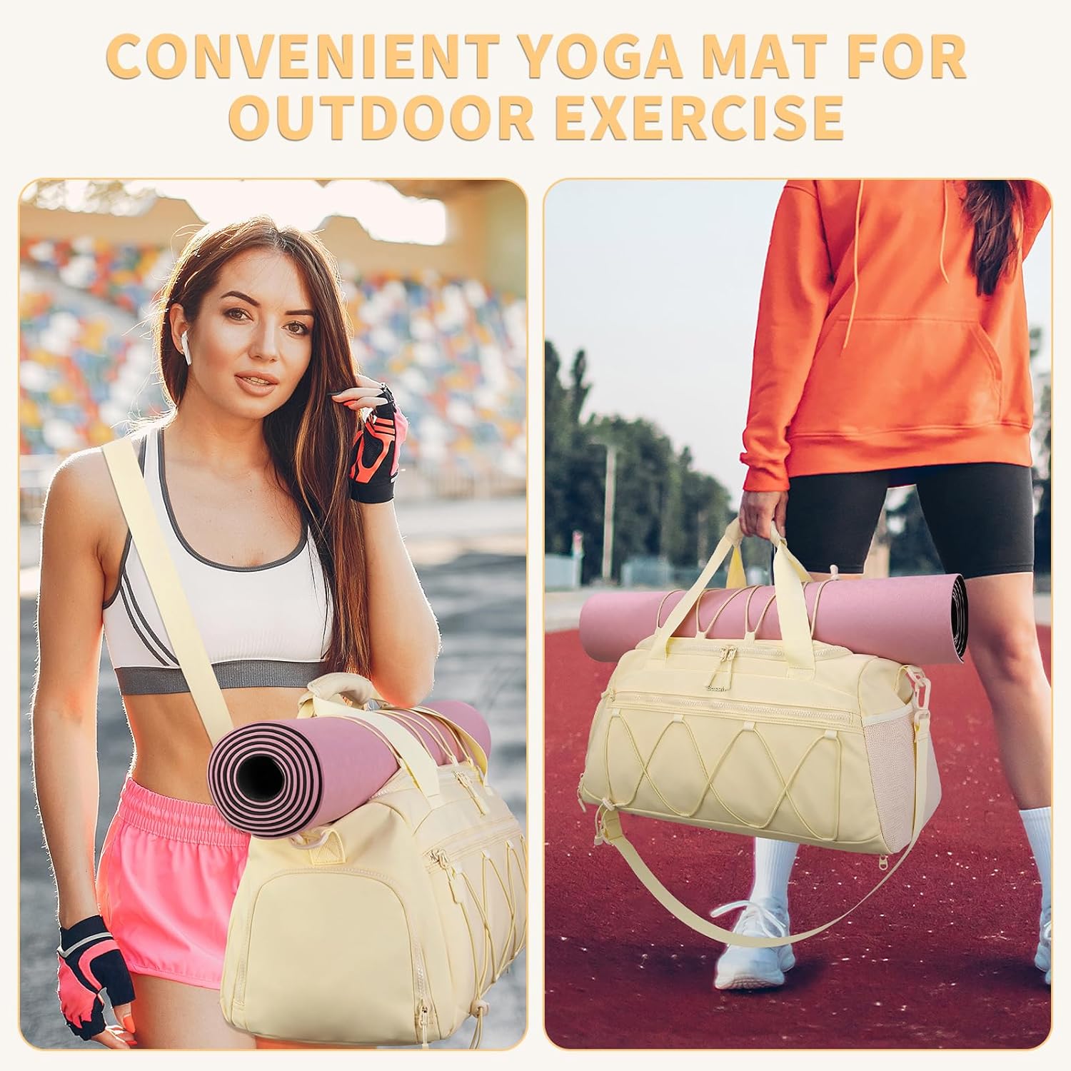 Gym Bag for Women, 40L Sports Duffel with Shoe Compartment, Carry-On Weekender Overnight Bag, Personal Item Travel Workout Tote Yellow