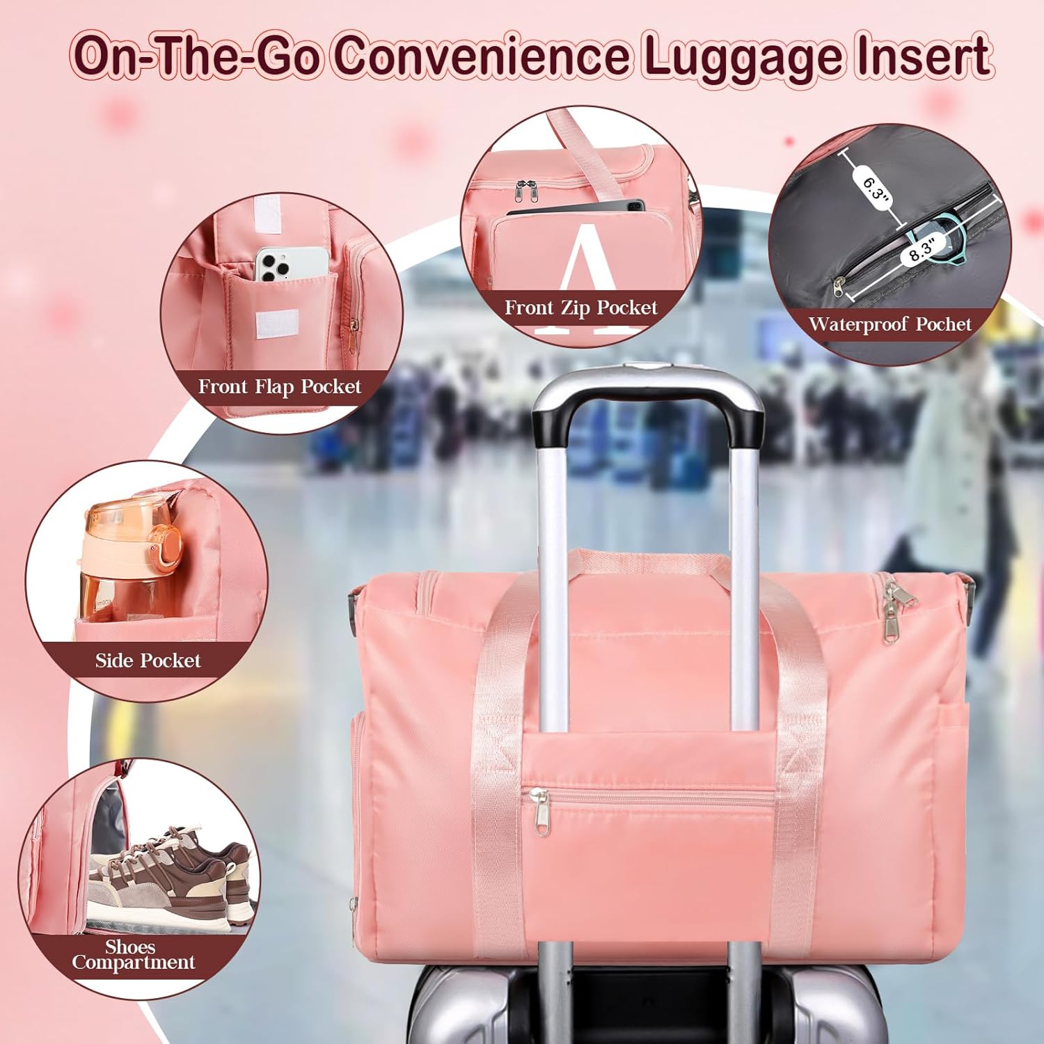 Journey Pleasant with Baggage Bag: Geared up with a baggage strap, this duffle bag will be connected to your suitcase. Whether or not you are go to the airport or on a highway journey, this weekender bag for ladies is designed for snug