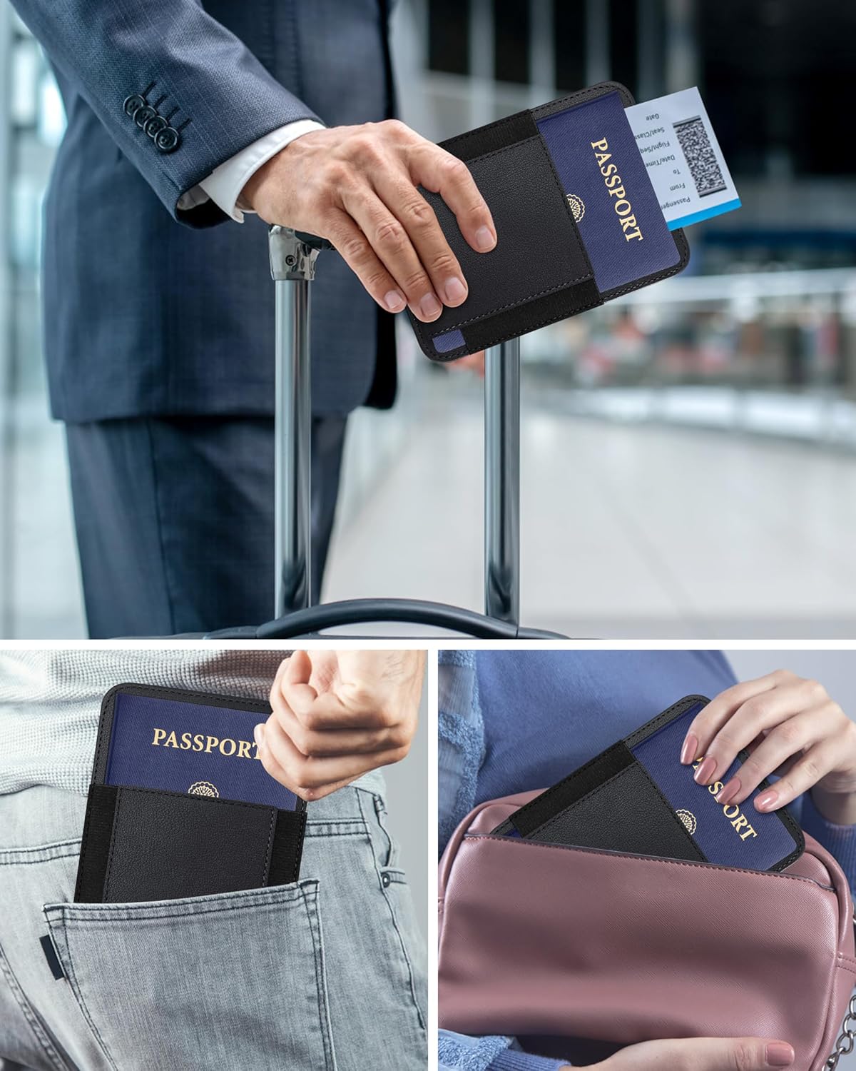 【Minimalist & Transportable】 4 card slots with 1 ID Window, 1 facet pocket for money or journey paperwork, 1 pocket with stretchy band for 1-2 passports; Slim 5.47″*3.94″*0.47″, Light-weight 2.19 oz; Crafted from premium Vegan leather-based and precision craftsmanship