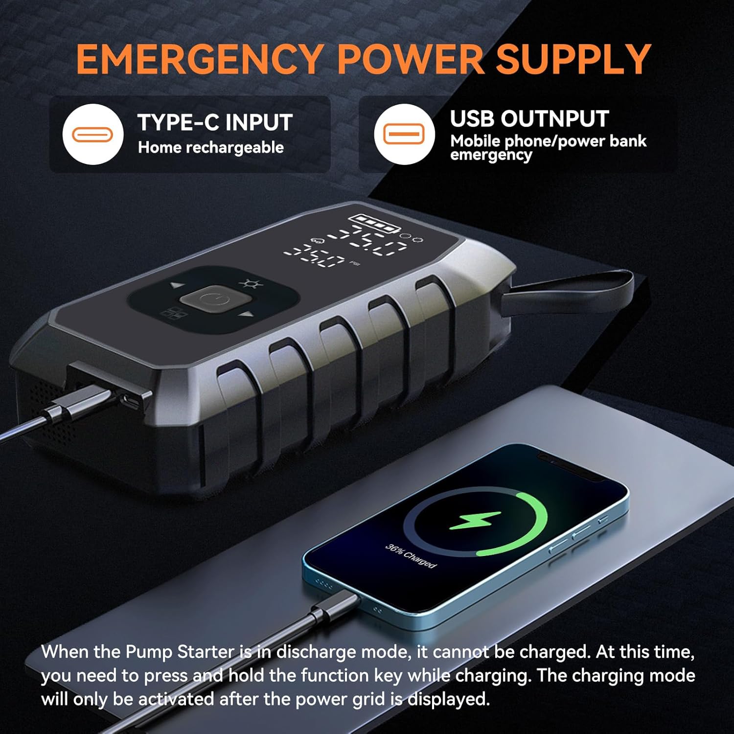 Highly effective Battery for Lengthy-Lasting Efficiency: Geared up with a strong battery, the Aokly Automobile Tires Pump affords prolonged use on a single cost. Able to inflating as much as 4 SUV tires with out recharging, this inflator additionally doubles as an emergency energy supply, offering a number of jump-starts to your car when wanted.[When the Pump Starter is in discharge mode, it cannot be charged. At this time, you need to press and hold the function key while charging. The charging mode will only be activated after the power grid is displayed. ]