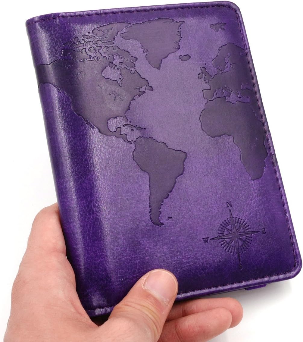 RFID Blocking Hand Made Purple World Map Passport holder,make with prime quality Loopy Horse PU leather-based,comfortable,slim,sturdy.