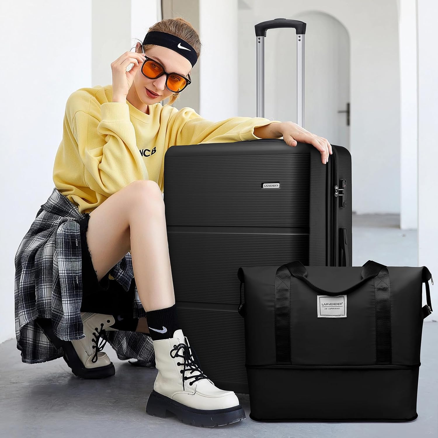 LARVENDER Luggage Sets 3 Piece with Duffel Bag, Hardside ABS Carry On suitcase sets with 360°Spinner Wheels, Durable Luggage Set Clearance For Women Men, Black