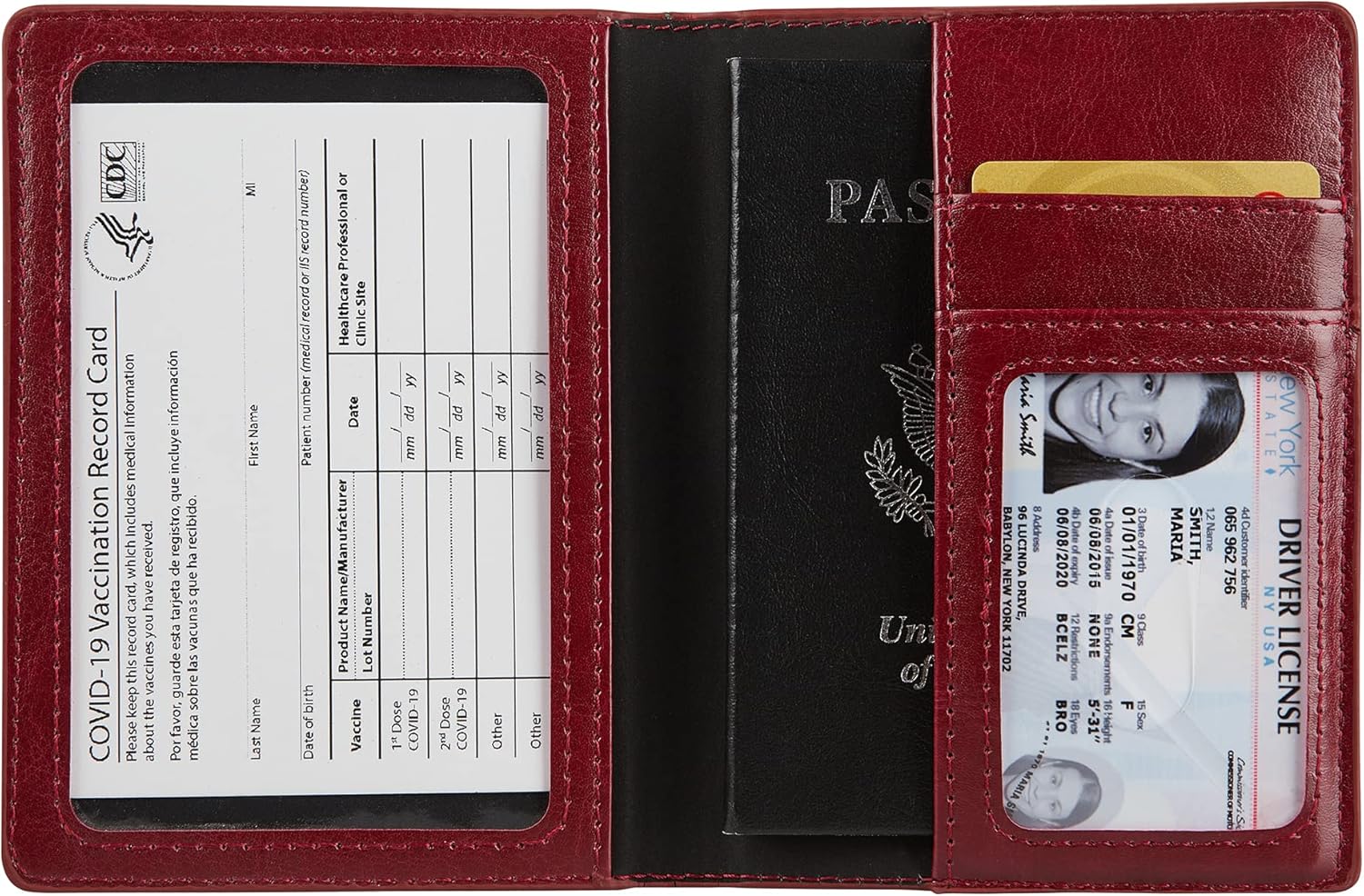2 Credit score Card Slots, 1 Clear CDC Vaccine Card Slots, 1 Passport Pocket