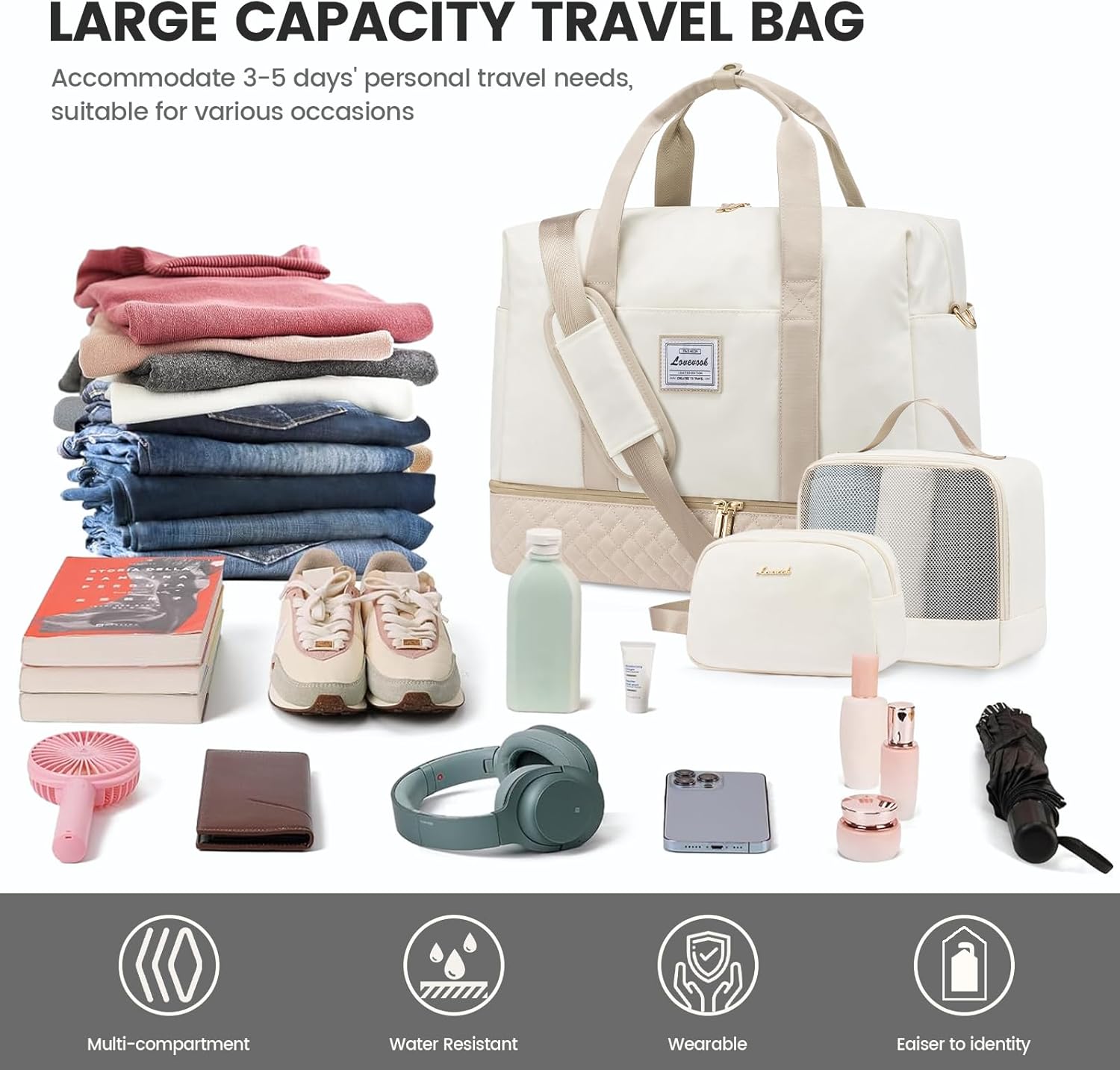 👟【Shoe Compartment & Indifferent Toiletries Bag】This weekender bag has one giant fundamental compartment and a number of pockets inside, which allow you to maintain your issues so as. Your toiletries and underwear could be positioned in separate packing cubes. There are additionally two facet pockets for bottles and umbrellas. A separate dry and moist compartment lets you retailer moist towels and toiletries.
