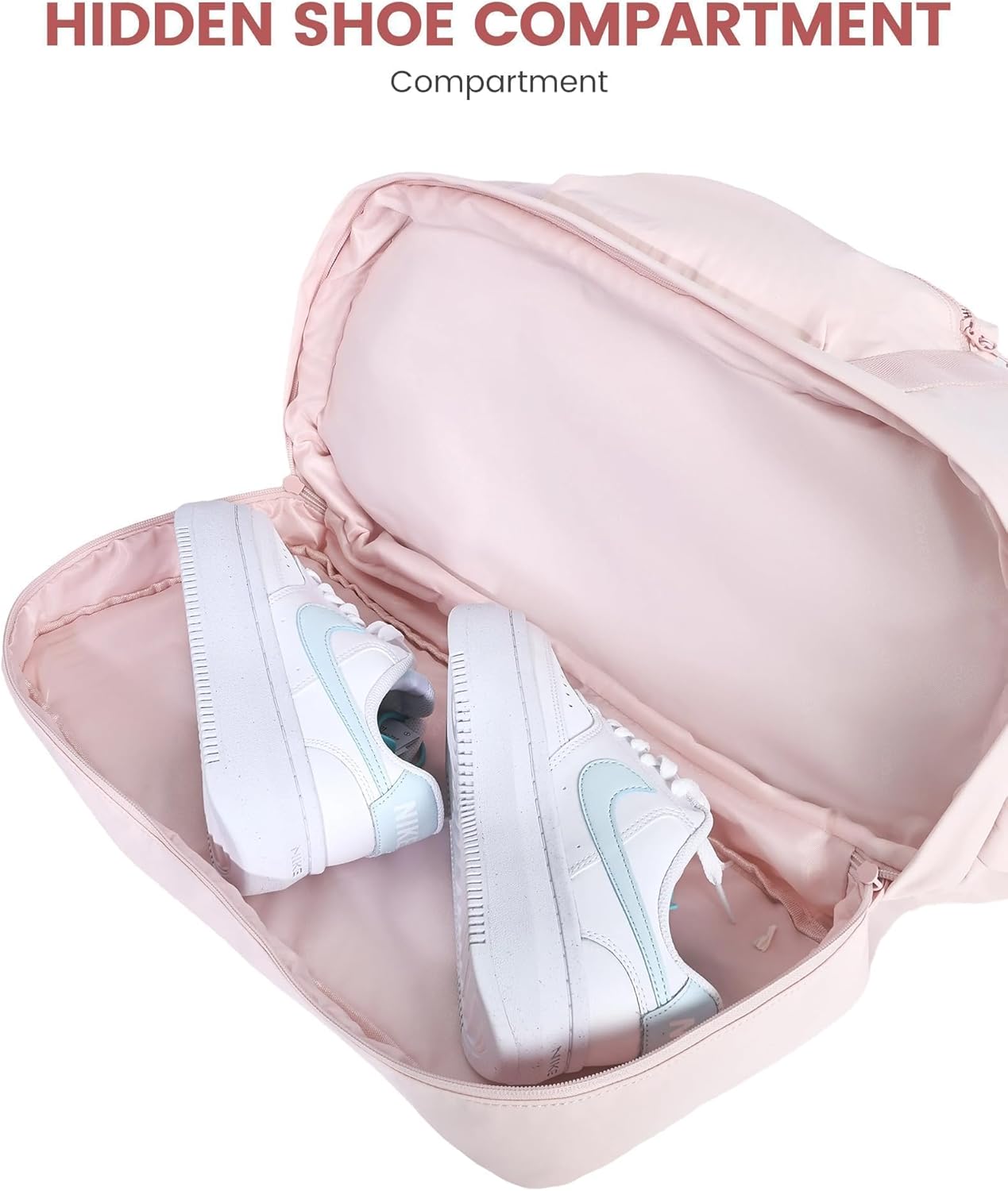 Hidden Shoe Compartment: Our versatile bag that includes a hidden backside compartment for sneakers and soiled garments. This intelligent design retains your objects organized and ensures stability, even when empty.